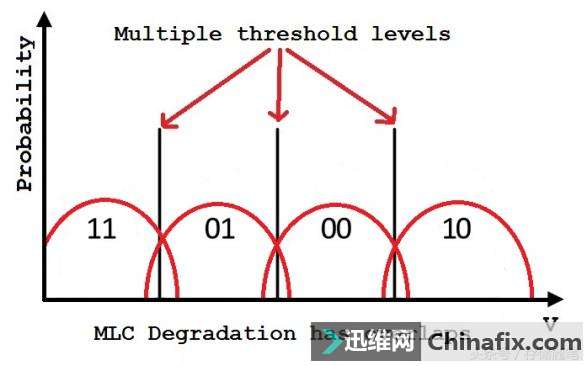 | 通常,在工业级固态硬盘等使用中,为了获得更高的耐久性以及承受更宽的工作范围,会选择SLC NAND。 但是,随着科技的不断进步,MLC NAND工艺不断提升,更多的工业级固态硬盘开始采用MLC NAND,不过,工业级用户依然对NAND的耐久性很关心。 现在我们通过SLC与MLC NAND的结构对比,来看看MLC能否堪当大任? 电压等级不一样 SLC和MLC NAND最重要的不一样就是,SLC只有两个电压等级,0或者1;但是MLC NAND有四个电压等级:11,01,00,10,如下图。 工业级固态硬盘:MLC NAND取代SLC NAND 图 从上图我们也开始发现,SLC NAND的两个电压等级之间的间隔比较大,不容易发生电压等级的错位或者重叠。但是,MLC NAND四个电压等级之间的间隔偏小,在经过一些读写擦除等操作后,电压等级之间发生重叠的几率会很高,如下图: 工业级固态硬盘:MLC NAND取代SLC NAND 图 电压等级发生重叠,直接导致bit位翻转,数据读取发生错误。 在过往的实验与经验中,SLC NAND的耐久性(Endurance)以及数据保持(Retention)能力是MLC NAND的20倍之多,同时,SLC NAND可以比MLC NAND承受更广的高低温范围。 工业级固态硬盘:MLC NAND取代SLC NAND 图 不过,这种情况已经得到改观,NAND厂商已经对MLC NAND作了很多的优化,MLC NAND也可以承受工业级要求的温度范围。同时,NAND Controller也作了很大的努力,特别是对ECC纠错方面的提升,可以纠正更多error bits. NAND flash中的wear leveling算法也得到了很大的优化。当读到一个page页时,先检查该页中的error bits数目是否已经接近ECC纠错的能力,如果是,则将数据读取纠错后重新写入新的一页。这样可以大大的提升MLC的寿命。 工业级固态硬盘:MLC NAND取代SLC NAND 图 为了取代SLC NAND, MLC NAND做了这么在工业级使用领域,其实MLC NAND还有一个加强版MLC NAND,业内称之为eMLC. eMLC,顾名思义,是MLC NAND的升级版,具有更高的耐久性,但是也有一个缺点数据保持能力有所下降。企业级使用场景中,会有连续不断的电源供应,所以数据保持(Retention)能力较弱,也没有太大影响。但是,对于,工业级使用来讲,不能保证有连续不间断的电源供应,所以,会要求Retention能力要与耐久性一样,具有很强的性能。 |