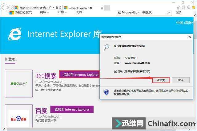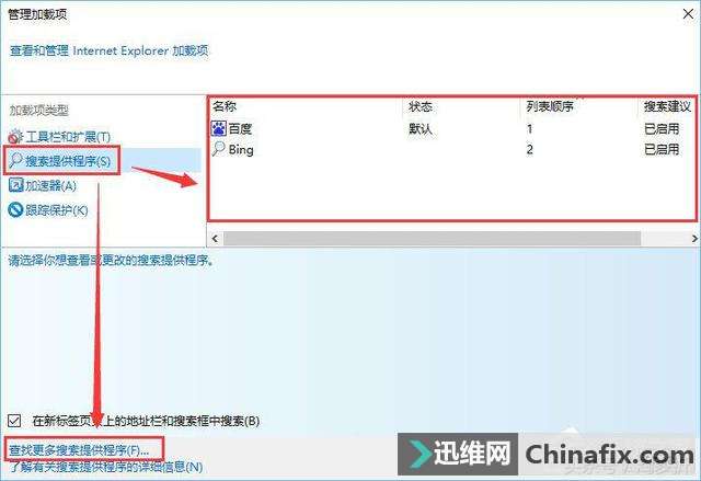 | Win10如何修改 ie浏览器默认的 搜索引擎?ie浏览器是Win操作系统自带的浏览器,很多伙伴都喜欢运用ie浏览器,然而ie浏览器默认的搜索引擎是必应,一些用户不习惯用必应,想改成百度等搜索引擎,那么要如何修改呢?接下来跟随小编一起来看看具体的操作方法吧。 具体步骤如下: 1、首先打开ie浏览器,选择右上角的工具栏按钮,点击“管理加载项”; 2、选中“管理加载项”后进入加载项管理界面,在左侧点击“搜索提供程序“,在右侧选择需要运用的搜索引擎,但是右侧如果没有合适的那么点击底部的“查找更多搜索提供程序(F)”选项; 3、此时会跳出许多搜索引擎,喜欢哪个点击后面的“添加至Internet explorer”即可; 4、此时会弹出是否添加搜索提供程序界面,我们按需要进行设置,最后点击【添加】即可! 通过上述几个步骤的简单操作,我们就能在成功在Win10系统下修改ie浏览器 默认搜索引擎了。是不是非常简单呢?感兴趣的朋友们,快点参考一下吧!如果你有好的方法欢迎在帖子下面留言哦! |