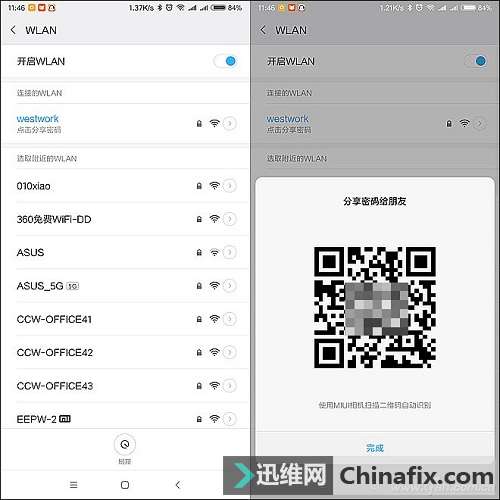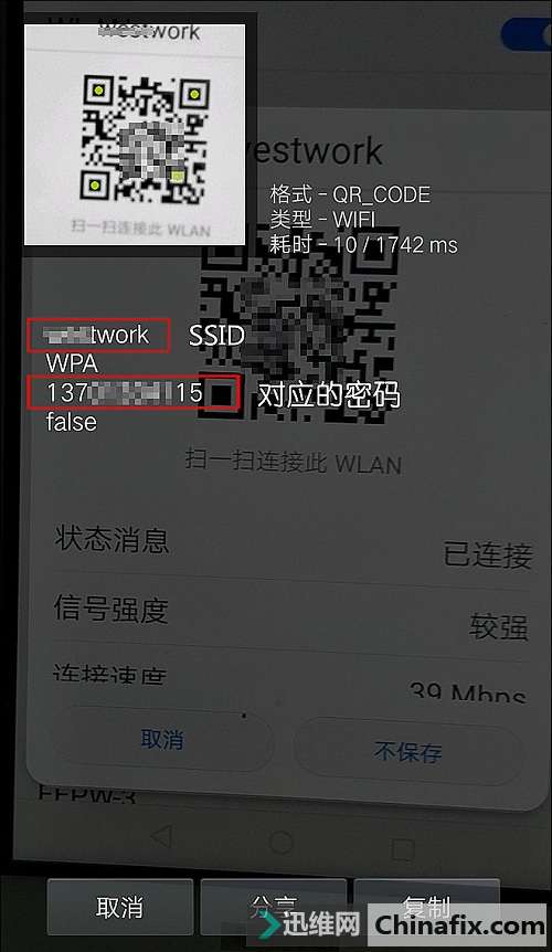 | 小编曾经介绍过很多种查看连接WiFi密码的技巧,比如ROOT后通过浏览配置文件查看、或是安装第三方APP读取等。如果你的手机支持二维码分享Wi-Fi热点的形式,那我们就有了另外一种查看连接WiFi密码的方法! 以华为和小米为代表的很多Android手机,在设置的WLAN选项中,点击已连接的Wi-Fi就能弹出分享这个Wi-Fi的二维码,其他同品牌手机在Wi-Fi界面通过扫一扫就能实现自动免(输入)密码连接,是一种简化分享的小功能。 实际上,这个功能不仅限于某个具体手机之间,其他品牌手机只要通过扫一扫功能(浏览器、微信的扫一扫功能都可以)对着这个二维码,就能在屏幕上弹出对应的Wi-Fi热点名称和密码信息,而其他品牌手机只需将其复制下来,手动输入密码就能接入对应的Wi-Fi。 利用这个方法,我们还能避免出现忘记Wi-Fi密码的尴尬。进入所有连接过Wi-Fi的二维码分享界面,将带有二维码的内容截屏,并将截屏照片保存好即可。如果哪天你大脑“短路”忘记了Wi-Fi密码,只需用微信等APP的扫一扫功能,读取保存过的截图照片就能查看连接WiFi密码了。 |