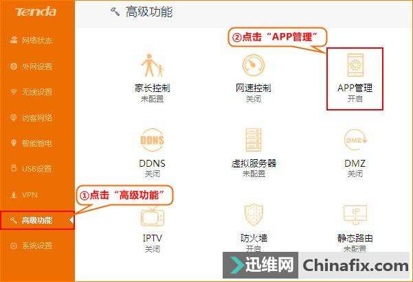 | 家里有路由器的小伙伴总担心一个问题,担心不在家的时候家里的无线WiFi会不会被蹭、路由器会不会被黑,好在如今科技技术飞速发展,让这些问题得到了很好的搞定,今天小编要跟大伙分享一个技能,如何 用手机远程控制家里的路由器,利用路由器的远程控制功能,让出门在外的你也能管理家里的网络。 接下来以腾达光纤专用路由AC6为例为大伙讲解用手机远程控制路由器的方式。 1.登录路由器的设置界面,在浏览器地址栏输入192.168.0.1,按回车键,然后输入路由器管理员密码,按“登录”即可。 2.进入管理界面后点击左边菜单栏的【高级功能 】,选择并点击【APP管理】。 3.开启“APP管理”,下载腾达路由管理软件(在各大APP商店搜“腾达路由”即可下载)。 4.下载完毕后打开腾达路由 APP,输入路由器管理员密 码。如下图,用手机号码或者邮箱注 册,然后把注 册的手 机号码或邮箱地址填入上图的【账号】设置中,最后按保存即可。 5.完成设置后,当你不在家时,用手机随时登录腾达路由APP的即可轻松远程管理路由器。在腾达路由APP中你可以进行家长控制、网速控制、黑名单、密码修改、无线WiFi定时开关、无线WiFi加速、信号强度调节等等操作。 另外,腾达路由 APP还有设备上线提醒功能、当发现陌生设备连接家里的无线WiFi时,可通过APP一键拉黑蹭网者,让你再也不用担心无线WiFi被蹭,路由器被黑! |