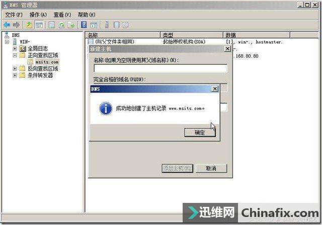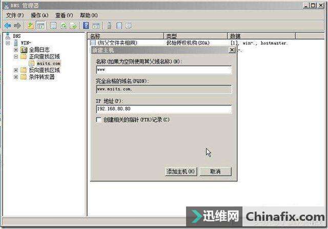 | 域名系统(英文:Domain Name System,缩写:DNS)是因特网的一项服务。它作为将域名和IP地址相互映射的一个分布式数据库,能够使人更方便的访问互联网。DNS 运用TCP和UDP端口53。当前,对于每一级域名长度的限制是63个字符,域名总长度则不能超过253个字符。 下面给大家介绍一下把server 2008搭建成域名解析服务器的方法。 简介 简单地说,DNS服务器用来解释域名,将一组有意义的字符转换为IP地址,然后再进行访问站点,这样相对于运用IP地址来访问网站方便许多。 在开始之前我先讲一下,举个例子:http://www.google.com/,在这个网址中http为传输协议,www为主机类型,google为主机名,com为顶级域名。 实验我们采用的主机名称:win- 主机IP 地址 :192.168.80.80 具体步骤: 1.配置要地主机的IP 地址 环境配置(IP、子网掩码、DNS)好后,就好可以安装和配置Win Server 2008环境的DNS,本文主要以对应ip为192.168.80.80 具体配置我就不再操作了。 2.安装DNS服务器相关的步骤 在服务器管理里面可以看到“角色”的添加。 如何把server 2008搭建成域名解析服务器 图1 如何把server 2008搭建成域名解析服务器 图2 如何把server 2008搭建成域名解析服务器 图3 如何把server 2008搭建成域名解析服务器 图4 3.进行相关域名解析操作 可能安装完成,大家不知道在那,点击----》开始-----》所有程序------》管理工具----》DNS 如何把server 2008搭建成域名解析服务器 图5 如何把server 2008搭建成域名解析服 务器 图6 如何把server 2008搭建成域名解析 服务器 图7 新建区域名称为www.jb51.net 如何把server 2008搭建成域名 解析服务器 图8 如何把server 2008搭建成域名解析服务器 图9 只有在Active Directory的环境下才可以运用活动目录集成区域和动态安全更新 如何把server 2008搭建成域名解析服务器 图10新建主机并增加A记录 如何把server 2008搭建成域名解析服务器 图11成功增加www.jb51.net主机记录 如何把server 2008搭建成域名解析 服务器 图124.测验主机解析域名的正确性 第一,我们运用ping进行一些简单的测验,检查是否解析成功 如何把server 2008搭建成域名解 析服务器 图13 第二,我们运用NSLOOKUP 进行解析测验,当然 我做了反向区域。另外反向区域,大家要以自己先研究一下。 如何把server 2008搭建成域名解析服务器 图14 |
