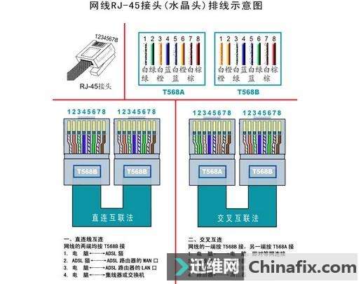 | 电脑现在我没每天都在用,但是不是有时网线头坏了不能联网很着急呢,今天小编给大家分享个网线水晶头接法图解,一起来看看吧。 一、关于网线水晶头接法图解的问题,在制作网线之前,需要准备几样工具。 网线水晶头接法图解 2、五类网线,也就是现在最常用的网线若干米。 网线水晶头接法图解 3、RJ-45插头,也就是所谓的水晶头若干。 网线水晶头 接法图解 二、网线标准线序 网线水晶头 接法图解 网线水晶头 接法图解 标准568A:1绿白,2绿,3橙白,4蓝,5蓝白,6橙,7棕白,8棕 标准586B:1橙白,2橙,3绿白,4蓝,5蓝白,6绿,7棕白,8棕 上网只用到1 2 3 6 1.2下传3.6上传,电话用4.5 7.8是做为电源用,有些设备要,国际标准。 三、网线接法,现在最常用的网线五类双绞线,它有2种接法,直通线和交叉线。 直通线:两头都是568B标准。用于连接: PC(电脑)—————————— HUB(集线器) PC(电脑)—————————— SWITCH(交换机) PC(电脑)—————————— ROUTER(路由器) HUB(集线器)———————— HUB(集线器)的级连口 SWITCH(交换机)—————— HUB(集线器)的级连口 SWITCH(交换机)—————— SWITCH(交换机)级连口 SWITCH(交换机)—————— ROUTER(路由器) 交叉线:一头是568A,另一头是568B。用来连接 PC(电脑)——————————PC(电脑) HUB(集线器)————————HUB(集线器) SWITCH(交换机)——————SWITCH(交换机) ROUTER(路由器)——————ROUTER(路由器) 简单的说!直通线就是两端线序相同的线,用于不一样设备之间互连,交叉线就是两端线序不一样的线,用于同种设备之间互连。 四、关于网线水晶头接法图解的问题总结,实际网线水晶头制作步骤: 步骤1、用压线钳将网线的胶皮剪掉长约2cm即可。 步骤2、按照上面说的标准线序把网线排列好,可能情况如下图: 网线水晶头接法图解 步骤3、把8股线末端剪齐。 步骤4、将水晶头有塑料弹簧片的一端向下,有金属针脚的一端向上,把整齐的8股线插入水晶头,并使其紧紧的顶在顶端。 步骤5、把水晶头插入8P的槽内,用力的握紧压线钳即可! 网线水晶头接法图解 |