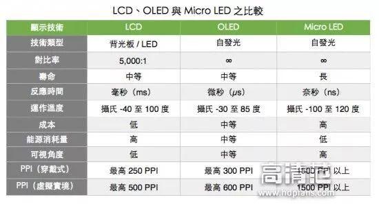 | 一则苹果将抛弃三星OLED转身投入Micro LED屏幕的消息让这个本来低调的屏幕变得关心度越来越高,那么什么是Micro LED?今天小编就给大家讲讲现在Micro LED的概念、优劣势、以及现在为止的状态,一步步分析解剖Micro LED。 什么是Micro LED 微发光二极体显示器(Micro LED Display) 为新一代的显示技术,结构是微型化LED 阵列,也就是将LED 结构规划进行薄膜化、微小化与阵列化,使其体积约为现在主流LED 大小的1%,每一个画素都能定址、单独驱动发光,将画素点的距离由原本的毫米级降到微米级。 什么是Micro LED 图1 Micro LED优点 低功耗、高亮度、超高解析度与色彩饱和度、反应速度快、超省电、寿命较长、效率较高等,其功率消耗量约为LCD 的10%、OLED 的50%。而与同样是自发光显示的OLED 相较之下,亮度比其高30 倍,且解析度可达1500 PPI。 举例说明:Micro LED相当于Apple Watch 采用OLED 面板300 PPI 的5 倍之多,另外,具有较佳的材料稳定性与无影像烙印也是优势之一。 什么是Micro LED 图2 Micro LED现阶段缺点 有优点必定有缺点,Micro LED现在也有众多缺点等待搞定,最主要的还是成本和大面积运用方式得不到有效搞定,依赖于单晶硅衬底做驱动电路,意味着制作一块屏幕至少需要两套衬底和互相独立的工艺。这会导致成本的上升,尤其是较大面积使用时,会面临良率和成本会有巨大的挑战。 什么是Micro LED 图3 现在与市面上屏幕类型对比 什么是Micro LED 图4 通过图片上的对比我们可以得知,Micro LED的潜力是巨大的,几乎已经是完爆LED以及OLED屏幕。发展的未来 在这场Micro LED 领域的谁与争锋中,台湾不少大厂也已投入技术研究,包括半导体新创公司錼创(PlayNitride)、工研院、友达、群创、晶电。其它也在Micro LED 争战行列的国际大厂包括Sony、三星、乐金、日亚化学、夏普等。 从上述相关研究单位我们也不难看出,Micro LED以后发展的大致方向为VR,智能手机,显示屏等。 |