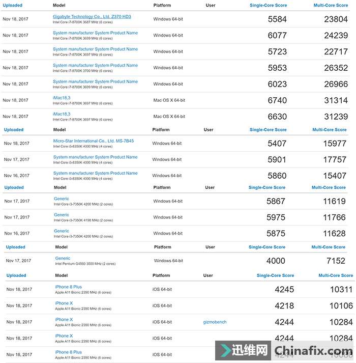| 高通骁龙835,华为麒麟970,苹果A11,三星Exynos 8890、联发科Helio X30,六核、八核、十核心,每一个都是在发布会上宣布性能提升上多少多少,能处理什么什么样的VR、AR应用等等,个个都是不好惹的主,加之我们日常接触最频繁的就是手机,很多情况下就能脱离电脑使用手机完成日常任务,这在以前完全不敢想象的事情。如今的智能手机仿佛给了我们一个错觉,已经强大到可以替代电脑CPU,这可能吗?如过无法替代,手机SoC与电脑CPU性能究竟差多少? 涨姿势:手机SoC与电脑CPU性能究竟差多少?(图1) 手机SoC发展史 在诺基亚时代,即便是当时的最新的塞班S60操作系统智能手机,在发布时也不会刻意提及使用了某某某家处理器,这是因为当时手机CPU供应商来来去去也就那几家,没什么好选择,而且需要处理的应用还不算太复杂,性能也就一般般。 可是当Android系统横空出世以后,真正的智能手机时代降临,功能五花八门,应用越来越复杂,因此逐渐对手机SoC/CPU的要求越来越高。因此我们才会在手机发布会上,看到各种以用了XXX处理器为荣,并把性能吹上天。 下面总结了一下苹果iPhone近年来A系列处理器的一些规格,可以看出一些性能提升的秘密。首先是核心数目,苹果在双核处理器上坚持了整整五年,在高通、联发科疯狂堆核的年代,A5-A9 SoC简直就是“出淤泥而不染”,依靠制程工艺进步、领先的64bit处理器设计、更复杂的CPU设计,性能也足以媲美别家的多核处理器。 涨姿势:手机SoC与电脑CPU性能究竟差多少?(图2) 不过双核性能始终有“天花板”,功耗、发热都是大问题,因此苹果在iPhone 7上的A10 Fusion SoC使用了四核心设计,今年的iPhone X A11 Bionic SoC甚至用上了类似big.LITTEL架构的大小共六核设计。再看会今年的AMD锐龙处理器、Intel第八代酷睿处理器,何尝不是都在“用多核换性能”呢? 那么大家心中肯定萌生出一个念头,手机SoC不过短短十数年,但似乎性能增幅远远高于电脑桌面版CPU。手机性能大跃|进后,真的能媲美了电脑CPU了吗? Geekbench数据库罗列 GeekBench 4数据库虽然齐全,但是参考价值很低,也是出了名的万年X86电脑高级黑。因此它自己官方的处理器排行榜都是独立开来,以Android、iOS、macOS、Windows系统划分,我们并不能直接拿其中的得分来直接对比出说,“哇,苹果的A11处理器吊打Intel Core i3”,这种言论是不负责任的。 涨姿势:手机SoC与电脑CPU性能究竟差多少?(图3) 大家来看看,GeekBench 4中苹果A11 bionic处理器多核成绩依然只有1万分出头,Intel Core i3-7350K也是只有1.1万分左右,难道A11就能媲美Core i3了吗?再看看Intel Core i7-8700K在macOS上多核得分超过3万,而在Windows系统下连2.7万都达不到,你还能说这个测试是公平公正的嘛? 如果你想公平一点的较量是吧,那么只能找一下目前高通和微软勾搭的新产品了——高通骁龙835 SoC打造的笔记本。还真别说让小编找到了可以用的数据,华硕一款名为TP370QL的设备,用着高通8核处理器,并且主频为2.21GHz,很大几率就是高通骁龙835处理器,笔记本运行在Windows 10 Pro系统。 其GeekBench 4单核跑分成绩为单核成绩889、多核成绩3170,反观高通骁龙835手机在Android系统测试中随随便便就单核接近2000、多核6500以上。而像奔腾G4400在Windows 32位系统单、多核成绩完虐高通骁龙835。 涨姿势:手机SoC与电脑CPU性能究竟差多少?(图4) 目前并没有一个可以完全评价手机SoC和电脑CPU性能的测试软件,因为两者的架构不一样情况下,很难实现统一的标准来衡量他们之间的关系。你们会说安兔兔、GeekBench这种也不行吗? 真的不行,即便是靠谱的GeekBench 4。我们无法得知它们运行在不同的设备上是个什么样的情况,是否至针对CUP部分,抑或是同样考察了GPU、内存、I/O总线等等,还有软件上的函数库使用、编译器的选择,这些都是我们无法了解的。如果真的要比较,那么我们只能得出一个比较大概的数字。 其实手机SoC与电脑CPU到底差在哪里? 架构不同:CISC\RISC之争 涨姿势:手机SoC与电脑CPU性能究竟差多少?(图5) 首先我们要说明手机上的SoC不仅仅是一个CPU,它还额外集成了如GPU、ISP、DSP、通信基带等等一系列IP,因此SoC本来就是一个大整体芯片,一下我们仅仅讨论它的CPU性能。 其实手机SoC与电脑CPU性能之争,归结到底就是架构之争。那就是ARM与X86的爱恨情仇的故事,双方都在自身领域一家独大,都想着向对方领域渗透,却到头来无可奈何,大家都已经站稳了脚跟。 手机SoC普遍都是采用ARM提供的核心作为基础,依据自身需求改变SoC的核心架构,而ARM正正是RISC精简指令集的代表人物。而CPU巨头Intel、AMD所采用的X86架构已经沿用了数十年,是CISC复杂指令集的典型代表。 这两种指令集一直都在求同存异当中,都在追求在体系架构、操作运行、软硬件、编译时间以及运行时间等等诸多因素中做出某种平衡,以此达到当初所设计的高效运转目的。 CISC复杂指令系统就是为了增强原有指令的功能,设置更为复杂的新指令实现部分大量重复的软件功能的硬件化。由于早期的电脑主频低、运行速度慢,为了提高运算速度,不得已将更多的复杂指令加入到指令系统中来提高电脑的处理效率,慢慢形成以桌面电脑为首的复杂指令系统计算机。其指令集也是在不断更新增加当中,如Intel为X299平台上的处理器增加了AVX 512指令集,目的就是为了提高某一方面的性能。 虽然CISC可以实现高性能CPU设计,但是设计起来就相当麻烦了,要保持庞大