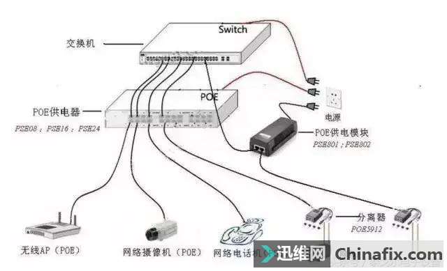 | 交换机的供电接口 01 POE交换机有哪些供电接口,如何连接 图1一、到底哪个传数据,哪个供电? 标准的poe交换机有两个标准,802.11af和802.11at,这两个标准的poe交换机都支持两种供电方式: ①1236既走数据又供电; ②1236走数据,4578供电; POE交换机有哪些供电接口,如何连接 图2二、那种实际是运用那种供电方式呢? 实际运用的是哪种供电方式取决于POE交换机,这两种供电方式对于我们支持POE的摄像机都兼容的。poe会根据情况自行判断运用那种供电方式。 由于百兆通信运用的1、2、3、6四根芯,千兆通信运用到了所有的8芯。因此: 1、对于百兆PoE交换机:供电标准下网线只要1、2、3、6线芯连通即可,既走数据又供电;当然如果你想1236走数据,4578供电,那么必须要8芯网线,并且保证8芯所有连通。 2、对于千兆PoE交换机:受限于数据传输的需要,无论那种方式供,都需要8芯网线所有连通。 POE交换机有哪些供电接口,如何连接 图3三、什么是poe交换机的两个标准? IEEE802.3af供电功率15.4W, 若摄像机功率是10W的,可以运用802.af供电的交换机; IEEE802.3at供电功率为30W, 若摄像头功率是20W,需运用802.3at的POE交换机; 802.3at是向下兼容802.3af的,所以支持802.3af的摄像机可以用802.3af或者at的交换机供电; 支持802.3at的摄像机则只能运用802.3at的交换机供电; POE交换机有哪些供电接口,如何连接 图4四、如果前端摄像机超过了30W,且是大功率的设备如何供电? 对于一些大功率的前端设备而言,比如球机,输出的功率达不到要求,无法运用POE交换机供电。 比如有些球机的功率为40W,,交换机单口功率无法满足,所以需要运用球机自带的POE模块供电。 交换机的连接方式 POE交换机有哪些供电接口,如何连接 图5一、交换机和终端都支持PoE 这种方式PoE交换机直接通过网线接到支持PoE供电的无线AP和网络摄像机上,这种方式最简单,但也需要注意如下两点: 1、确定PoE交换机以及无线AP或者网络摄像机是否是标准的PoE设备 2、要仔细确认购买的网线的规格,网线质量很关键,质量不好的网线会导致AP或者IPC无法受电或者不断重新启动。 如图 POE交换机有哪些供电接口,如何连接 图6(poe交换机连接方式) 二、交换机支持PoE,终端不支持PoE 这种方案PoE交换机出来接PoE分离器,PoE分离器将电源分离成数据信号和电力,有两根输出线,一根是电力输出线,一根是网络数据信号输出线即普通网线。电力输出有5V/9/12V等,可以匹配各种DC输入的非PoE受电终端,支持IEEE 802.3af/802.3at标准。数据信号输出线即普通网线直接接到非PoE受电终端的网口即可。 如图 POE交换机有哪些供电接口,如何连接 图7(poe分离器的连接方式) 三、交换机不支持PoE,终端支持PoE 这种方案交换机出来接PoE供电器,PoE供电器将电力加到网线上之后传输给终端。这种方案利于扩展原有的布线网络,对原有网络没有影响。 如图 POE交换机有哪些供电接口,如何连接 图8(poe摄像机+poe供电器的连接方式) 四,交换机不支持PoE,终端也不支持PoE 这种方案交换机出来接PoE供电器,再接PoE分离器,最后传输给终端。 方案三和方案四适合于传统网络的改造,即原来的交换机不支持PoE供电,但是又想利用PoE供电好处的场合。 如图 POE交换机有哪些供电接口,如何连接 图9(poe供电器的连接方式) 那实际使用时,网线应该怎么接呢,很多朋友对POE供电技术有所了解,知道1 2 3 6或者4 5 7 8等供电线序问题,所以怕万一接错,导致设备烧毁等严重后果。 POE供电标准对POE交换机、POE供电模块(POE供电器)等PSE设备的要求是只要支持1 2 3 6 和4 5 7 8供电线序的其中一种即可,当然最新的802.3at 4pair标准需要两种都同时支持。而对POE受电设备的要求是必须同时支持两种供电方式。 到底应该怎么接好呢? 1.如果你的POE交换机、POE供电模块是标准的PSE设备,那么网线随便接下面接的无线AP或者IPC都不会烧毁。标准的POE供电过程,有一个检测过程,这个检测过程会确保对不是标准的受电设备不进行供电。如何区分标准的设备还是非标准的设备,可参看如何区分标准POE供电和非标准POE供电。 2.如果你的PSE设备是强供型,那么在接线之前必须非常小心查看说明书,看供电PIN脚是1 2 3 6还是4 5 7 8,如果身边没有说明书,也可以用万用表检测,如果有稳定的12V/24/48V输出的就是供电脚。搞清楚了供电PIN脚,还不能直接接终端设备。另外一端的无线AP或者IPC要搞清楚输入电压是多少,网口电路是否经过了改装,如果没有经过改装,接上去之后就很可能会将网口电路烧毁。如果电路没改装就需要用到POE分离器。 |