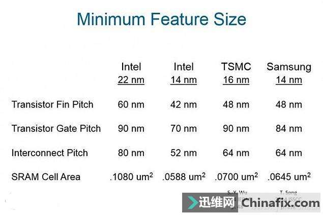 | 无论是处理器、GPU还是闪存,制程工艺都是决定它们能否超水平发挥的核心要素。从表面的数字来看,工艺数字越小,意味着技术越先进,可以在更小的空间塞进更多的晶体管、降低漏电率、整体提升芯片性能,降低功耗。但是,由于制程工艺没有一个统一规范的参考标准,所以工艺数字背后往往存在水分。CPU制造工艺哪家强呢?就好像英特尔在14nm工艺上卡壳3年,而三星和台积电则领先一步进入了10nm时代。那么,他们的10nm就一定比英特尔的14nm强吗?下面随小编一起来看看吧! CPU制造工艺哪家强 图1 A9处理器的版本之争 我们不妨回忆一下2015年iPhone6s A9处理器的版本之争。为了确保供货稳定,苹果同时找三星(14nm)和台积电(16nm)代工生产A9处理器,如果从表面分析,理论上应该是三星代工的A9能耗比更好,因为14nm优于16nm。 令人大跌眼镜的是,通过无数用户的反馈和测验,台积电代工的A9却比三星代工的A9更好,电池续航更久。 CPU制造工艺哪家强 图2 原因很简单,别看14nm和16nm之间相差2个nm的级别,但它们却都属于一个时代的工艺,不存在14nm比16nm先进一说。此外,台积电给A9代工的工艺属于16nm FinFET Plus,已属于第二代16nm,而三星为A9准备的则是14nm FinFET LPE,属于第一代14nm工艺,更成熟的16nm FinFET Plus自然优势更大。 谁在定制标准? 细心的童鞋应该发现了,三星针对移动处理器的制程工艺在经历28nm之后,一下子就跳到了14nm。而台积电28nm之后曾还推出过20nm工艺,但它仅被高通骁龙810和联发科Helio X20所采用,在很短的时间内也跳到了16nm。 换句话说,三星和台积电每一次推出的工艺节点并没有显著的迭代关系,给人的感觉就是“忽如一夜春风来”。 反观英特尔,则始终贯彻摩尔定律:每代制程工艺都要让芯片上的晶体管数量翻一番。英特尔每次都在遵循按前一代制程工艺缩小约0.7倍来对新制程节点命名,从90nm→65nm→45nm→32nm→22nm→14nm→10nm→7nm,每一代制程节点都能在单位面积上容纳比前一代多一倍的晶体管。 因此,英特尔高层曾不止一次表态,受制程进一步的微缩越来越难,一些公司开始背离摩尔定律的法则,即使晶体管密度增加很少或者根本没有增加,但他们仍继续为制程工艺节点命新名。没错,英特尔暗讽的就是三星和台积电,他们的16nm、14nm和10nm根本就无法体现位于摩尔定律曲线的正确位置! 隐藏在数字背后的奥秘 那么,如何才能计算出标准的晶体管密度指标呢?英特尔早前在精尖制造日活动中否定了“栅极距×最小金属距”和“栅极距×逻辑单元高度”这两个传统的计算公式,因为它们都不能真正衡量实际实现的晶体管密度,即没有试图说明规划库中不一样类型的逻辑单元及这些指标量化相对于上一代的相对密度。 为此,英特尔开始倡导曾经流行但一度“失宠”的一个计算公式,它基于标准逻辑单元的晶体管密度,并包含决定典型规划的多个权重原因。 CPU制造工艺哪家强 图3 如果按照这个公式计算,虽然英特尔工艺在字面上似乎“落后”于竞争对手,但成绩却可以实现越级反超。 简单来说,在制程工艺的鳍片间距、栅极间距、最小金属间距、逻辑单元面积等核心参数上,哪怕是英特尔在2014年推出的第一代14nm工艺,都有着媲美竞争对手10nm的表现。 CPU制造工艺哪家强 图4 换句话说,哪怕竞争对手在工艺命名上“掺水”,最新工艺才刚刚达到英特尔3年前的水准。要知道,英特尔14nm现在已经进化到14nm++了,而且最新10nm工艺也即将上马。 提到英特尔的10nm,它和竞争对手相比又有了多少差距?从英特尔给出的参数对比来看,在所有项目中英特尔的10nm都远远领先与台积电和三星的10nm,可以直接拿来和对手明年量产的7nm工艺PK。 CPU制造工艺哪家强 图5 随着英特尔后续推出10nm+和10nm++的优化版工艺,届时它们甚至可以媲美竞争对手的5nm工艺。 CPU制造工艺哪家强 图6 英特尔在工艺上处于领先地位的证明,还体现在最新材料和技术的使用上。比如,英特尔从90nm时代就引入了应变硅,而竞争对手是从65nm时期才引入;英特尔在45nm时带来了高K金属栅级,竞争对手在28nm才开始尝试...... CPU制造工艺哪家强 图7 翻译过来,英特尔就是想强调自家的工艺才是行业的最标准命名,其他家多有掺水成分,希望消费者不要被轻易忽悠。 学习成本转嫁消费者 虽然业内人士都知道英特尔工艺冠绝群雄,有一定基础知识的玩家也能通过公式和资料辨别各家工艺的强弱关系。但是,对绝大多数普通消费者而言,复杂的公式和冗长的解释都太过深奥,我们只知道10m比14nm好,7nm是10nm的下一代。按照惯例,更新的工艺就代表更厉害。 此外,英特尔的领先工艺长期以来只供自己运用生产X86处理器。而竞争对手的工艺则主要用来规划ARM处理器,二者并没有直接的竞争关系,最终产品也不好拿来作比对。 因此,在台积电和三星几乎每两年就更新一代工艺的速度相比(哪怕只是数字游戏),英特尔现在采取的同一工艺打磨至少三年的进度着实缺乏效率。将学习成本转嫁给消费者,让大家了解14nm+比别人10nm好,10nm比别人7nm棒?只能说任重而道远。 看到这里,相信大家已经对处理器背后的制程工艺有了一定的了解,数字大小并不能完全体现能耗比,在鳍片间距、栅极间距、最小金属间距、逻辑单元高度等复杂的专业名词面前,英特尔总有越级挑战的能力,因为行业缺乏强制性的标准概念。 CPU制造工艺哪家强 图8 好消息是,英特尔现在已经全