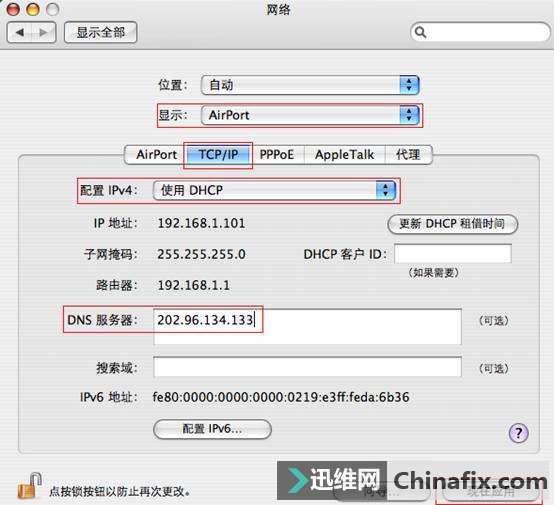 | MacBook是当下最流行电脑之一,时尚、美观。不过对于大多数用惯了windows操作系统并且不熟悉网络的朋友们来说,配置无线接入并不是一件容易的事情。苹果笔记本怎么安装无线路由器?经过测试,TP-LINK全系列WLAN产品均能兼容MacBook使用。本文将结合TP-LINK无线路由器来介绍苹果MacBook的无线连接设置过程。 苹果笔记本怎么安装无线路由器?MacBook安装无线路由器的方法(图1) 说明:无线路由器相当于收到其他维修同行的一台有线路由器加一个无线发射的小型“基站”,可以同时满足有线电脑、无线的笔记本、平板电脑等终端同时接入共享宽带上网。 一、 无线路由器的设置 TP-LINK无线路由器的设置相对比较简单,在设置过程中,有两个重要的参数需要记住: SSID:无线基站的名称,本例为“12345678”; 加密方式和密钥:本例为“WPA2-PSK”加密,密钥为“12345678”; 二、 苹果MacBook的设置 STEP1:打开MacBook,选择桌面菜单“Internet Connect”(Internet连接),进入网络连接设置页面。 苹果笔记本怎么安装无线路由器?MacBook安装无线路由器的方法(图2) STEP2:选择“AirPort”,进入WiFi设置页面。点击“打开AirPort”开启无线开关,搜索无线信号,如下图所示。 苹果笔记本怎么安装无线路由器?MacBook安装无线路由器的方法(图3) STEP3:选择自己的SSID“12345678”,弹出无线密码输入框(若未加密,无线会直接连接成功)。 苹果笔记本怎么安装无线路由器?MacBook安装无线路由器的方法(图4) STEP4:“无线安全性”选择“WPA个人级”(即WPA-PSK/WPA2-PSK),“密码”框中输入无线密钥“12345678”,点击“好”。当状态显示:已连接到“12345678”,无线连接成功。 苹果笔记本怎么安装无线路由器?MacBook安装无线路由器的方法(图5) STEP5:设置MacBook无线网络参数(这步是可选操作,一般MacBook默认采用DHCP自动获取网络参数。即上面的操作设置完成之后,MacBook已经连接到网络)。 选择桌面图标“System Preferences”。在弹出的页面中选择“网络”。弹出网络连接设置页面,如下图所示,“位置”选择“自动”,“显示”选择“AirPort”,选择“TCP/IP”,即可设置无线网络参数(推荐使用DHCP)。 苹果笔记本怎么安装无线路由器?MacBook安装无线路由器的方法(图6) 注意: 1. DNS服务器必须手动填写,请正确填写当地的DNS服务器IP,如不清楚可以咨询当地ISP; 2. 如果要设置静态IP,可以将“配置IPV4”选择为“手动”,即可设置“IP地址”、“子网掩码”、“路由器”以及“DNS服务器”。 STEP6:获取到正确的网络参数之后,MacBook即可正常连接到网络。 苹果笔记本怎么安装无线路由器?MacBook安装无线路由器的方法(图7) |