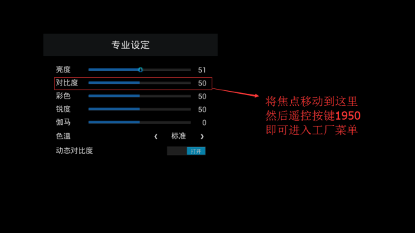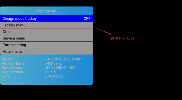 | 第一、首先TCL电视要想进入工厂模式,主要得看你是什么机芯,不同的机芯进入工厂模式的方式是不一样的,所以要想知道你的TCL电视怎么进入工厂模式,首先你得确认你电视的机芯,那么如何确认你的TCL电视的机芯呢?下面就详细给你说明。 打开你的TCL电视,按下你的TCL电视遥控器的主页键,然后进入电视的【设置】。 2.进入设置以后,焦点移动到【系统】,然后选择系统信息点击遥控器ok键,然后显示出来会有一个叫做软件版本的选项,会有一个字符串【V8-RT95001-LF1V087】,其中第二个字段的前四位就是RT95,这四位也就是你的机芯。 3.其实还有另一种方法也可以查看你的机芯的,直接查看你电视背后的条码如下,也可以知道机芯。 第二、其次就是电视根据机芯判断进入工厂模式的方法了。进入TCL电视不用机芯工厂模式的方法如下所示。 一、主流方法一,就是大部分TCL电视都可以按照方法一进入工厂模式,方法如下: (1)先将音量减到0,然后调出主菜单,光标移至“对比度”,在2秒内迅速按数字键9、7、3、5即可进入工厂模式。 (2)按出菜单(按遥控器上MENU键),接着按遥控器上的8202。 (3)云尚智能电视进入工厂菜单:我的助手-系统信息-功能简介-快速按上下左右 二、主流方法二、RT95机芯和MS8系列机芯的方法都如下: (1)遥控器按信源,选择模拟接受,具体如下图: (2)按遥控器“菜单”键进入用户菜单,进入后选择设置”,选择完设置进入到下一步操作。 (3)进入到专业设定里面以后,移动焦点到对比度,然后遥控器按键【1950】即可进入到工厂模式里面。 方法三:有的TCL电视则直接按回看键(工厂菜单中FACTORY,FAC HOTKEY为ON时有效) |