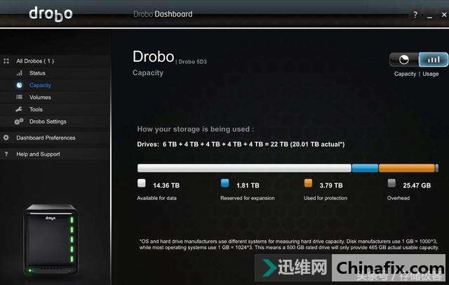 | 在过去,拥有收到其他维修同行的一台苹果MacBook是一件很时髦的事儿,不一样于Win的MacOS运用体验也给了果粉茶余饭后的不少谈资。不过个性与轻薄的代价就是储存容量的严重不够,除了存文件还想Boot Camp装Win双系统?先搞定了储存空间实现电脑扩容再来吧! 硬盘空间利用神器,组合运用实现电脑扩容 图 万能淘宝很快给出了短版SD卡套的方式,用储存卡给Macbook扩容。不过从2016年开始Macbook Pro取消了SD卡槽,摄影师有没有哭晕在厕所我不知道,想扩容的小伙伴们都傻眼了。 硬盘空间利用神器,组合运用实现电脑扩容 图 要搞定容量储存难题,要么堆移动硬盘,要么用收到其他维修同行的一台DAS直连附加储存服务器搞定! 硬盘空间利用神器,组合运用实现电脑扩容 图 在储存卡槽被阉后,一位摄影师运用了大堆移动硬盘或硬盘底座来储存他的照片。每次切换硬盘都显得很繁琐,如果把照片整个存入单块10TB的大硬盘中,又担心一旦硬盘问题所有数据灰飞烟灭。 硬盘空间利用神器,组合运用实现电脑扩容 图 经过了解之后,他在Drobo的储存机器人产品中发现了2个选择: Drobo 5c和Drobo 5D3,前者运用USB 3.0 Type C接口,后者则提供有一个USB 3.0 Type C和2个Thunderbolt 3雷电接口。权衡之后他选择了最近新上市的Drobo 5D3。Drobo 5D3几乎是专为Mac电脑用户而生,Thunderbolt 3可通过菊花链形式连接,收到其他维修同行的一台Macbook Pro可同时连接Drobo 5D3附加储存服务器,并同时将显示信号输出至外接显示器。 硬盘空间利用神器,组合运用实现电脑扩容 图 就Drobo 5D3来说,它并不是外接硬盘盒那么简单。插入到5D3的硬盘将自动被Drobo的智能BeyondRAID功能管理,用户无需学习RAID知识,所有数据安全保护工作都是自动运行。硬盘支持热插拔,并且运用了免工具、免托盘的形式,非常方便。 为了方便管理,你可以在插入Drobo 5D3的硬盘侧面贴上相应的标签,写明加入阵列的日期。不过具体硬盘上数据储存的形态是你无需关心的。如果某一块硬盘破坏,Drobo 5D3上对应的指示灯会变成红色,提示你更换新硬盘然后自动完成阵列的修复。 硬盘空间利用神器,组合运用实现电脑扩容 图 通过Drobo自带的Dashboard软件,可以随时查看每颗硬盘的工作状态以及容量运用情况。Drobo 5D3底部的一排蓝色指示灯也将展示空间占用百分比情况,在需要扩容时,只需拆下一颗旧硬盘,然后替换一颗更大容量的硬盘即可。 Drobo 5D3支持不一样容量硬盘的混用,你可以同时插入不一样容量甚至不一样品牌的硬盘,一切管理和设置操作都是不必要的,Drobo的BeyondRAID可以所有代劳。 硬盘空间利用神器,组合运用实现电脑扩容 图 这位摄影师运用了4块4TB和1块6TB硬盘,在Drobo智能调整RAID阵列形态后,实际可用总容量为20TB。随着硬盘空间的运用,他还可以替换更大容量的8TB、10TB硬盘,实现无缝的、不影响随时运用的扩容。 性能方面,Drobo 5D3支持固态硬盘加速,能够将最常用热数据同步到底部mSATA插槽中安装的固态硬盘里,实现更高的随机读写能力。 硬盘空间利用神器,组合运用实现电脑扩容 图 通过AJA System Test软件测验,Drobo 5D3在机械硬盘搭配mSATA固态硬盘加速的情况下,连续读取速度达到556MB/s,写入速度402MB/s,如果运用纯固态硬盘(土豪的选择)的话,连续读取最高可达800MB/s。 除了摄影师之外,做视频非编的朋友也可从中Drobo 5D3提供的海量容量与高速性能中获益,毕竟运用MacBook的人群中不乏规划师群体,而MacBook Pro自带的储存容量实在太有限了。 |