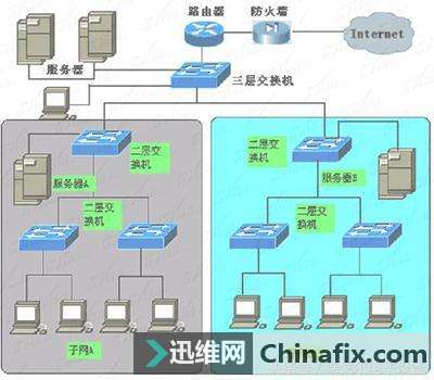 | 交换机是网络中最常见的网络设备,企业或家庭用户对交换机都不陌生。对企业的网络管理员来说,不论高端还是低端,交换机绝对是网络中非常重要的设备,并且数量较多,搞清楚交换机之间的连接更有助于工作的开展。 第一种方式: 局域网内交换机连接另一交换机再连接路由器、电脑。也就是说,有的电脑要通过无线路由器连接,有的电脑不通过无线路由器直接与交换机连接。 交换机 路由器如何连接第二种方式: 第二种方式:宽带连接 - 调制解调器 - 无线路由器 - 交换机 - 电脑。也就是说,有的电脑通过了交换机连接,有的电脑直接从无线路由器连接,有的电脑直接从调制解调器连接。 交换机 路由器如何连接 一、 交换机的星形集中连接 我们知道,交换机的最基本功能和使用就是集中连接网络设备,所有的网络设备(如服务器、工作站、PC机、笔记本电脑、路由器、防火墙、网络打印机等),只要交换机的端口支持相应设备的端口类型都可以直接连接在交换机的端口,共同构成星形网络。基本网络结构如图1所示。在星形连接中,交换机的各端口连接设备都彼此平等,可以相互访问(除非做了限制),而不是像许多刚涉入网管行列的朋友那样,认为连接在交换机的服务器是最高级的。 二、交换机的级联与堆栈 拓扑图 上图所示的仅是一个最基本的星形以太网架构,实际的星形企业网络比这可能要复杂许多。这复杂性不仅表现在网络设备如何高档,配置如何复杂,更重要的是表现在网络交换层次比较复杂。企业网络中的路由器和防火墙通常只需配备一个,但交换机通常不会只是一个(除了只有20个用户左右的小型网络)。如果用户数比较多,如上百个,甚至上千个,就必须依靠交换机的级联或者堆栈扩展连接了。但级联技术和堆栈技术也有所不一样,它们的使用范围也不一样。 交换机级联就是交换机与交换机之间通过交换端口进行扩展,这样一方面搞定了单一交换机端口数不够的问题,另一方面也搞定离机房较远距离的客户端和网络设备的连接。因为单段交换双绞以太网电缆可达到了100米,每级联一个交换机就可扩展100米的距离。但这也不是说可以任意级联,因为线路过长,一方面信号在线路上的衰减也较多,另一方面,毕竟下级交换机还是共享上级交换机的一个端口可用带宽,层次越多,最终的客户端可用带宽也就越低(尽管你可能用的是百兆交换机),这样对网络的连接性能影响非常大,所以从实角度来看,建议最多部署三级交换机,那就是核心交换机-二级交换机-三级交换机。 这里的三级并不是说只能允许最多三台交换机,而是从层次上讲只能三个层次。连接在同一交换机上不一样端口的交换机都属于同一层次,所以每个层次又能允许几个,甚至几十个交换机级联。层级联所用端口可以是专门的UpLink端口,也可以是普通的交换端口。有些交换机配有专门的级联(UpLink)端口,但有些却没有。如果有专门的级联端口,则最好利用,因为它的带宽通常比普通交换端口宽,可进一步确保下级交换机的带宽。如果没有则只能通过普通交换端口级联了。 通过级联端口进行级联的方式如下图所示; 交换机 路由器如何连接 通过级联端口进行级联 而通过普通端口所进行的级联方式如下图所示。 交换机 路由器如何连接通过普通端口所进行的级联 注意它们之间不仅所用端口不一样,所采用的电缆也不一样:采用级联端口进行的级联,需采用普通直通线;而采用普通端口进行的级联电缆为交叉电缆,就像两台主机对连一样。 至于交换机的堆栈,就不是所有交换机都可以的,而是要具有堆栈模块的。交换机的堆栈不是通过交换端口进行的,而是通过专门的背板堆栈模块,采用专门的堆栈电缆进行的连接。而且要注意的是,因为交换机堆栈通常是放在同一位置,连接电缆也较短,所以交换机的堆栈的目的主要是用于扩充交换端口,而不是用于扩展距离的。 同时,交换机堆栈还可提升各实际运用的交换机端口可用带宽,因为它是把堆栈在一起的交换机的背板带宽聚集在一起,这样交换机堆栈的总背板带就是几台堆栈交换机的背板带宽之和。背板带宽提升后,如果交换机的每个端口都用上了,这一优势就不是很显著(也是有效果的,因为不可能每时每刻每个端口都同时通信),但如果有交换机端口空余,效果会更显著,因为它可充分利用交换机的所有带宽。 堆栈连接如下图所示。 堆栈连接 交换机的堆栈连接端口通常是又排D形插孔的,一个交换机有两个这样的端口,分别标有“UP”和“DOWN”字样(如上图所示),表示对使用于向上和向上堆栈连接的,不能接错。 三、三层交换机的路由连接 前面我们介绍到,三层交换机也具有一定的“路由”功能,可以实现不一样子网的连接。但要注意的是,它的路由功能相对路由器来说还是要弱许多的。三层交换机的路由功能只能用于同一类型的网络互联,而且通常只是局域网子网之间的互联,并不能把局域网与广域网,或者互联网连接起来,因为三层交换机所支持的路由协议非常有限,毕竟这不是它的主要功能。 我们知道,在局域网上,二层的交换机通过源MAC 地址来标识数据包的发送者,根据目的MAC 地址来转发数据包。对于一个目的地址不在本局域网上的数据包,二层交换机不可能直接把它送到目的地,需要通过路由设备(比如传统的路由器)来转发,这时就要把交换机连接到路由