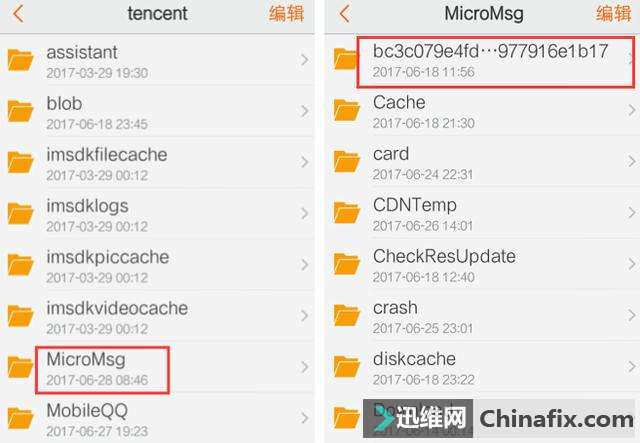 | 手机内存不足 微信占用手机内存太大?其实可以这样做…… 图 微信作为一款国民级的社交使用,其月活跃用户早已突破了8个亿。微信在社交、生活、支付等方面带给大家方便的同时,由于每天大家对微信的重度运用,微信在手机里面的缓存和所占用的空间也越来越大。虽然咱们可以运用微信自带的“清理微信储存空间”功能,但往往却不能清理得彻底。下面,小编将教你如何通过删除微信不必要的文件夹的形式,解决手机内存不足的烦恼。 手机内存不足 微信占用手机内存太大?其实可以这样做…… 图 1、进入微信缓存文件夹(具体步骤如下) 方式:打开手机“文件管理”——进入“tencent”文件夹——进入“MicroMsg”文件夹——找到拥有字符最长的那一个文件夹(登录过几个微信就有几个这样的文件夹),随即进入微信的缓存文件,下面选择可删除文件夹里面的内容即可。 手机内存不足 微信占用手机内存太大?其实可以这样做…… 图 2、可删除但不影响微信运用的文件。 “sns”文件:为平常浏览的朋友圈照片缓存,可直接删除。 “avatar”文件:好友照片墙或头像之类的东西,可直接删除。 “image ”文件:浏览公号的图片缓存,可直接删除。 “brandicon”文件:公号或朋友圈各品牌图标,可直接删除。 手机内存不足 微信占用手机内存太大?其实可以这样做…… 图 |