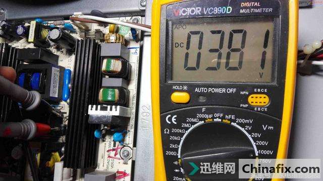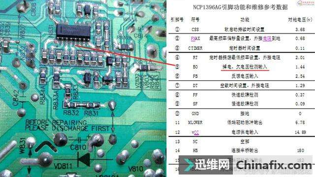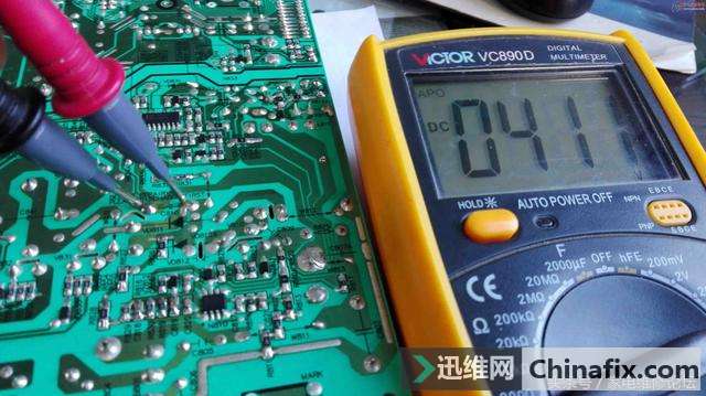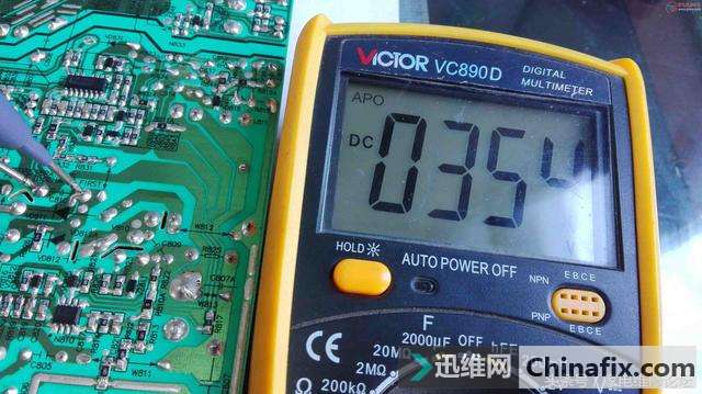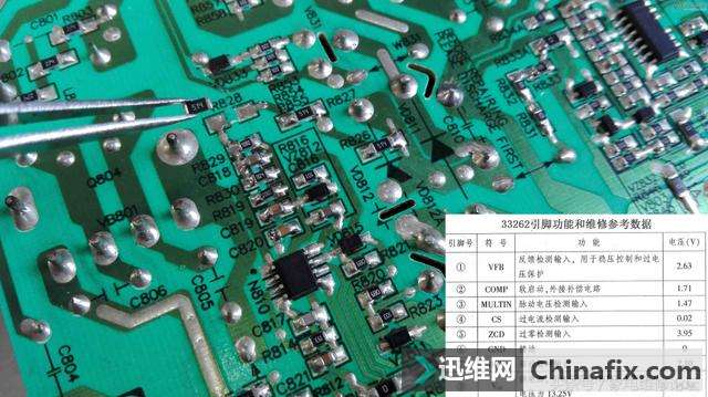 | 朋友听说我正在自学液晶电视维修,便把家里弃修的海信液晶电视送给我练活。他说这个电视以前就出现不开机的问题,后来不开机的次数越来越多,最后彻底不能开机了。 秒杀海信液晶电视TLM32V86K不开机故障(图1) 打开电视,取下电源板进行维修,这样比较方便。强制开机,听到继电器闭合的声音,测大电容两端电压为354V,显著偏低。测24V、12V均无输出;5VS输出正常。 秒杀海信液晶电视TLM32V86K不开机故障(图2) 马上想到PFC取样电阻,这个电源板的PFC管理芯片是33262,其第一脚是VFB反馈脚。于是拆下检测大电容正极至反馈脚的取样电阻,阻值均正常。那就可能是红胶漏电了,清理红胶重新焊接上去。 秒杀海信液晶电视TLM32V86K不开机故障(图3) PFC取样电阻分两部分,一部分是从大电容正极至取样点的三个电阻R826、R827、R828,姑且叫容阻吧,啊……容祖儿如果容祖儿漏电,会使取样点电压升高,于是PFC芯片调整第7脚的输出方波占空比,减少PFC开关管的导通时间,PFC电压降低;如果容祖儿阻值变大会使取样点电压降低,PFC电压相应升高。PFC取样电阻还有一部分是取样点至接地的两个电阻R829、R830,这两个电阻如果漏电,会使取样点电压降低,PFC电压相应升高;反之亦然。 从测验来看,电阻拆下测量阻值正常,而PFC电压偏低,说明应该是三个容祖儿背胶漏电引起的,而不是两个接地电阻漏电引起的,具体是哪一个容祖儿,那俺就不深究了。再次强制开机测验,PFC电压上升到411V,好像有些偏高,不过空载411V也不算高,正常工作时肯定没有这么高。 秒杀海信液晶电视TLM32V86K不开机故障(图4) 上机测验,完美开机。 秒杀海信液晶电视TLM32V86K不开机故障(图5) 再次测验PFC工作电压为381V,完全正常,维修到此也算结束了。 秒杀海信液晶电视TLM32V86K不开机故障(图6) 维修虽已结束,思考却未止步。为什么PFC电压低会造成不能开机呢?那再从大电容的正极查起,正极一路经PFC取样电阻去了PFC芯片的第一脚,还有一路经过几个电阻去了主电源芯片,这个电源芯片是NCP1396AG。经过跑电路,发现去了电源芯片的第5脚,而第5脚是电源芯片的掉电、欠电压检测输入脚,看到这儿,大家知道如何维修了吧。 秒杀海信液晶电视TLM32V86K不开机故障(图7) 原来,PFC电压降低,导致经电阻R831、R832、R833A至电源芯片第5脚的电压也降低,而电压低于正常值范围导致电源芯片欠压保护,停止工作,主电源无输出,电视自然不能开机了。 所以,即使PFC电压正常,如果这几个电阻阻值变大也会导致电源芯片欠压保护。大家如果遇到不开机的情况在PFC电压正常的时候,不妨先检查一下这几个电阻是否正常,这样可以少走弯路。如果像个性大师那样有示波器,看看脉冲输出端有没有波,也很容易判断电源芯片有没有正常工作。在电视正常开机的情况下,测得电源芯片第5脚的电压是1.127V。 秒杀海信液晶电视TLM32V86K不开机故障(图8) 为了验证判断的准确性,我把PFC取样电阻的一个510K的容祖儿换成420K的电阻,PFC电压降低为350V,测主电源芯片第5脚的电压也降低到0.97V,此时电源芯片停止工作,主电源停止输出。 秒杀海信液晶电视TLM32V86K不开机故障(图9) 这一次电视一小会儿就修好了。 |