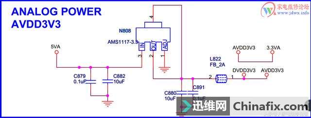 | 问题:有时开机有时不开机,康佳液晶电视板号35017303 此板为三合一版,采用6755电源IC,通电先测电压,6755输出的12V正常,再测处理器供电,5Vstb正常,再测3.3V,在测量的一瞬间是没有电压的,一秒后3.3V正常,板子开机了,开机后电压全都正常,目测没有发现虚焊接触不良,手摸各个IC温度也正常。很奇怪,多次开关机测验都是这样,表笔一接触到3.3V降压IC就开机,一时半会找不出问题,就把板子开机接上信号丢在一旁老化测验,两个小时后问题来了,板子自动关机,再次测量电压,又是表笔一接触3.3V.降压IC就开机。 找来图纸分析电路,此板共有两个3.3V,一个是3.3Vstb不受控,一通电就有,另一个3.3V受控,开机状态下才有,待机状态下没有。 这块板是3.3Vstb始终正常,另一个受控的3.3V不正常,这个3.3V是由一个1117-3.3把5V降成3.3V,于是测量1117的输入脚同样是表笔接触一瞬间是0V,一秒后电压正常开机,于是顺着它的输入脚查,输入是5V,再翻图纸,同样的有两个5V图纸上标5Vstb和5VA,前者不受控,后者受控,由一个9435控制,测量9435输入端没有5V.也是表笔接触一秒后才有5V,而5Vstb始终正常,心想这回找到问题了,肯定是5Vstb到9435输入端之间有问题,他们之间由铜箔经过一个电感连接,测量阻值,发现这个电感有时有阻值,有时候又没有,把它拆下来,烙铁OnePlus热,它就断成两截,更换后修复! 这里有个问题请教各位大师,为什么用表笔接触了IC后电压就能正常? 5VA控制电路,就是这里的L815坏 5VA降3.3V 以上就是小编和大家分享的康佳LED32F3000E液晶电视有时开机有时不开机检修思路,希望可以帮助到你。 |