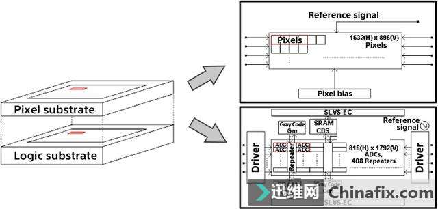 | 前几天还看到一则关于快门技术的新闻,引发了小编的诸多思绪,那就随意跟大家分享一下吧。这条新闻就是索尼研究出了一块146万像素的CMOS,啥?不是说快门么?怎么说到CMOS上去了?因为这是一块具有突破性的全局电子快门CMOS,换句话说就是所有像素的曝光、模数转换都能同时进行,而现在绝大多数CMOS相机的电子快门都是卷帘快门:从上到下逐行读取(机械快门无论纵走横走,也都属于此类)。 为什么要逐行读取?因为模数转换器是逐行共用,因此只能一行一行地进行转换,也就是说想要实现全局快门,就需要更多地铺设模数转换器来实现更快的读取速度,这正是索尼做的事情——这块146万像素堆栈式背照CMOS采用双层结构,上层为1639 X 896像素阵列,下层则是816 X 1792的模数转换器和408个信号中继器阵列,像素与模数转换器数量几乎是1:1!即便现在它只是一块146万像素的CMOS,依然处于研究状态,但它的应有优势可以说是革命性的。 索尼方案的先进之处在于堆栈(感谢苹果,感谢NVIDIA),以往的全局快门CMOS规划是在成像像素A旁边规划一个储存像素B,A得到的模拟数据就传输给B来短暂保存,等待模数转换器进行逐行转换,期间A可以继续进行拍摄。但问题在于这种比较取巧的方案会浪费大量CMOS面积来摆放储存像素,也没有办法完全利用所有的入射光线,换句话说就是模拟信号先天不够,需要进行数字放大,因此这种规划的信噪比和动态范围都显著更低。而索尼这个新方案则是真正的全局电子快门,未来可期! 既然提到全局快门、卷帘快门,就不得不说大家耳熟能详的果冻效应,果冻效应在照片和视频拍摄里都会出现,而且机械快门和电子快门都有,胶片相机也躲不掉……照片里的果冻效应最显著的是物体扭曲,视频里则是快速移动相机时出现断层,示例图如下: 可以看到扇叶高速旋转时,很容易就拍出右图的扭曲变形效果,形成果冻效应的根本原因在于CMOS读取速度太慢。如果对闪光灯稍有了解的话就应该知道同步速度这个概念,大多数数码相机的最高同步速度都不超1/250秒,它的原本含义是机械快门幕帘跨越成像元件所需的时间,速度快于这个时间的快门实际上都不是全开的,可以参考下图进行理解: 上面一排是低速快门,也就是低于最快同步速度时,比如曝光1秒,可以看到快门是可以全开,感光元件最上和最下列会有同时曝光的情况,在这种情况下运用闪光灯,可以保证整个感光元件都能对受闪光灯照射的被摄物正确曝光。 下面一排是高速快门,比如1/8000秒,虽然快门需要1/250秒才能完全跨过感光元件,但只要将前后帘移动的时间差等同于你想要拍摄的快门时间,就能保证前后帘之间留出的缝隙扫过的感光元件区域都是你想要的曝光时间,所以同步速度的快慢对于快门速度没有影响。 这时候回过头去看前面那张扇叶的照片你就应该明白了——CMOS最上面一排像素的曝光早于最下面一排接近1/250秒,对于高速运转的物体来说,1/250秒已经可以运动很长一段距离了,所以这就是果冻效应的一个根本原因。而对闪光灯来说,因为没有快门全开,超过最快同步速度时均匀曝光成为几乎不可能的事情,虽然也有采用多次闪光脉冲的方式实现高速同步,但闪光功率会显著降低,限制比较多。 同步速度并不是做不快,比如大中画幅相机采用镜间快门速度就快很多,镜间快门是相似光圈的圆孔型形态规划(本来也是跟光圈基本贴在一起),而不是焦平面快门的方形,对于镜间快门来说,所有快门速度都可以闪光同步,1/2000秒也不算事儿,因此它有利于高速闪光摄影。不过相对于我们常见的焦平面快门来说,最高速度要更低一些,也会有时间误差,对景深也有一点影响,只能说是使用方向不一样所导致的不一样。 同步速度这个概念尤其是电子快门时代,指的就是CMOS从上到下读取所需的时间,数码单反相机因为有机械快门在前面挡着,CMOS读取速度只需要跟机械快门的同步速度一致即可。而机械快门的极限在20多年前达到1/12000秒之后,就一直停留在1/8000秒,但我们知道机械快门属于精密加工,对工艺的要求很高,但电子快门就简单多了,所以电子快门一来就上到了1/32000秒这种机械快门几乎不可能做到的水平,但现有的电子快门基本都是做的电子前帘,每次拍摄只需要清空数据即可,如果后帘也做成电子快门,那就涉及到读取速度的问题,而读取速度的限制也就是我们之前提到的:逐行数模转换。这也是索尼A9这种旗舰速度机,同步速度也依然被限制在1/250秒上的根本原因。所以,全局电子快门从根源上来看做的就是一件事情——加速,疯狂地为CMOS输出加速,并顺便搞定闪光同步、机械快门震动等问题。 事实上只要读取速度够快,哪怕是卷帘电子快门也能很大幅度降低果冻效应,还是拿索尼A9举例,它的全速输出速度是每秒2430万像素X 20fps连拍=48600万,而它的4K视频是6000 X 3376=2025万像素超采,2025/48600=0.0416,也就是41毫秒,每秒帧速就是1000/41=24.3fps,满足电视电影制式的最低要求。因为我们在电影里其实很少有看到非常快速移动镜头的画面(会造成部分观看者不适),但自己拍视频会比较随意,就容易观察到果冻效应,所以24p的速度并不算太够用。简单来说想要知道果冻效应控制力度的优劣,对于现有的卷帘电子快门机型来说,只要看视频拍摄帧速即可。 简单举几个例子,ARRI Alexa Mini的4K虽然是3200 X 1800上采样插值而来,但帧速可以到60fps,2K Cine