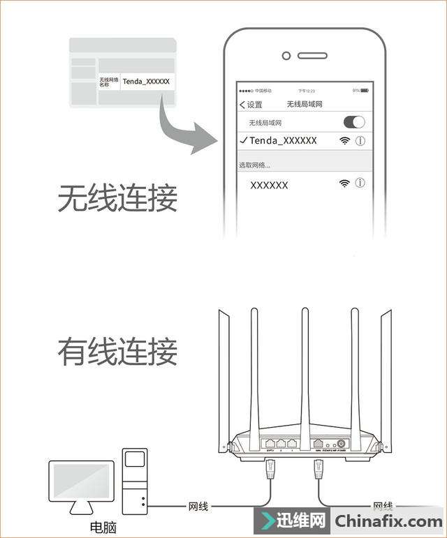 | 无线路由器已经越来越普及,大多数用笔记本或者只能手机的,都希望能直接用WIFI连接上网,方便、省流量。但是,很多刚接触无线路由器的朋友,都不晓得怎样安装路由器,腾达穿墙路由器AC7如何安装呢?下面小编给大家分享一下腾达穿墙路由器AC7安装运用技巧,一起来看看吧! 腾达高功率穿墙路由AC7的2种设置方式:方式1:通过路由器管理界面进行设置 1.接通路由器的电源,然后把入户的宽带网线/光猫连接到腾达AC7的WAN口上。 2. 入户的宽带网线/光猫连接到路由器AC7的WAN口后,你可以选择以【无线连接】或【有线连接】的方式进入AC7的界面进行设置。 无线连接 用手机、平板或笔记本电脑连接腾达AC7的无线WiFi 信号,默认无线WiFi名称可以查看AC7底部机壳上的贴纸信息,默认无线WiFi名称一般为“Tenda_XXXXXX”,出厂默认没有无线WiFi密码。 有线连接 用一根网线将电脑与AC7的任意一个LAN 口连接即可。 3.在手机/电脑/平板上打开任意一个浏览器,在浏览器地址栏输入路由器AC7的管理域名tendawifi.com或者管理IP地址192.168.0.1(默认管理IP地址),然后按回车键即可进入路由器界面。 4.路由器AC7会自动检测宽带的连接方式,请根据检测结果选择连接方式,并输入相关联网信息,例如:上网连接方式为“宽带拨号”,那么你需要输入宽带的账号和密码。接着设置无线名称和密码 、管理员密码,点击“下一步”完成上网设置,然后重新登录设置界面查看网络连接状态。 PS:如果你用的是【无线连接】的方式进入路由器界面的,修改无线名称和密码后会无法进入设置界面,请用新的无线WiFi密码连接无线WiFi,然后再进入路由器设置界面查看连接状态。 方式2:运用【宽带账号密码迁移功能】完成上网设置 1.接通旧路由器与腾达AC7的电源,用一根短网线连接AC7的任意一个LAN口和旧路由器的WAN 口。当AC7的LAN口指示灯由快闪变为常亮时(连续3秒以上),代表宽带账号和密码迁移成功。 2.完成上述步骤后,只需将AC7的WAN口与入户的宽带网线/光猫连接就可以运用无线WiFi上网啦。 3.手机连接腾达AC7的无线WiFi,下载“Tenda 无线WiFi”管理APP,打开管理APP设置无线WiFi名称和密码,方式如下图所示▼ |
