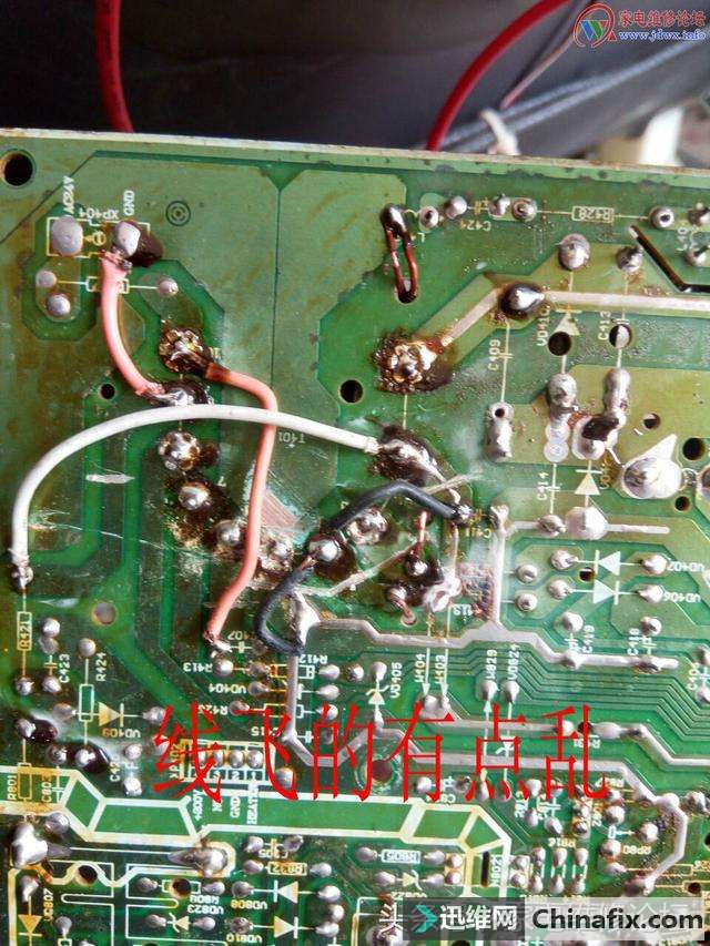 | 客户拖来收到其他维修同行的一台海信电视机,指示灯亮不开机,打开后盖,测量135V电压正常,测量行驱动电压为2V很低,这样低的电压都是高压包短路的表现,因为处理器检测到行信号不对,输出的行信号是保护的信号,此时测量驱动管基级有0.5V电压,为了验证到底是不是高压包短路,断开驱动管基级,驱动管C级电压回升25V。 海信电视机指示灯亮不开机检修思路一例 海信电视机指示灯亮不开机检修思路一例 开动示波器,再开机的瞬间,等波形出现时,按示波器的Start/STOP抓波一次 ,呵呵,果然短路, 由于没有此高压包,客户等不及,那就对客户说,加急需要150元,您能接受吗。客户同意,于是用康佳高压包代替,飞线后检测无误后开机,OK,线飞的不太好,大伙别见笑,哈哈哈哈,最后是一张正常灯丝脚波形图。 海信电视机指示灯亮不开机检修思路一例 海信电视机指示灯亮不开机检修思路一例 海信电视机指示灯亮不开机检修思路一例 海信电视机指示灯亮不开机检修思路一例 |
