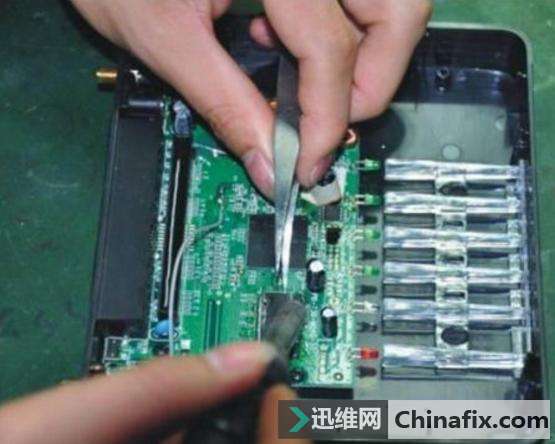 | 任何硬件设备使用久了都可能出现故障,而很多朋友家中的路由器基本都是一天到晚长期开着,使用时间久了,也容易导致出现硬件故障。假如你的路由器芯片坏了如何维修?能否自动手更换呢?如果你动手能力强,工具齐全,当然可以的!下面小编以更换内存及闪存为例,给大家介绍一下详细的操作方法。 更换FLASH及SDRAM操作方式如下: 整备工具:镊子 烙铁 焊锡丝 热风枪 助焊膏 先取下芯片有两种,一种直接用烙铁 一种用热风枪。 1.用烙铁 取FLASH,首先用烙铁在FLSAH两边加锡 然后在两边用烙铁不停来回加热。 2.用热风枪取FLASH,调节好热风枪的风量及热量,在FLASH上方对准脚位来回移动,看到芯片脚上面的锡融化时,用镊子取下。 3.用烙铁取SDRAM的方式,同样是在两边加锡 4.在烙铁加热过程中,用镊子轻轻撬。 5.用热风枪取SDRAM,同样调节好热风枪的风量及热量,在SDRAM上方对准脚位来回移动,看到芯片脚上面的锡融化时,用镊子取下。 6,下面我们就来演示怎么装上去。以装SDRAM为例。 6.1用烙铁把焊盘托平整 有利于对准。 6.2 双手对SRDAM进行定位。注意方向,定好移开右手用烙铁加锡固定。 两点固定好松手。 6.3 加锡焊接,注意不要焊短路了或虚焊了。如果芯片脚是有锡 ,烙铁拖不掉时加点助焊膏。 自此就可以了,都是基础东西,但需要多练习。 |