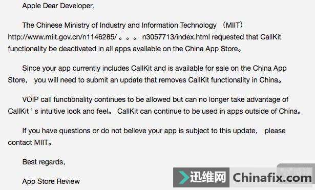 | 苹果有 ARkit、Classkit、Homekit 和 Sirikit 等开发工具,Callkit是一款能够将微信等网络电话整合到手机本身的通话功能中的工具,可以将网络通话变得和iPhone自带的通话功能一模一样。但遗憾的是,这个在苹果iOS10上亮相的苹果Callkit国内被停用,确定和中国用户无缘了。 近日,苹果官方对开发者发出通知,称按照工信部的规定,在中国区App Store上架的所有App都不可以支持Callkit功能,对于支持Callkit的使用,已经上架的需要移除,而未上架的则审核不会通过。 苹果Callkit国内被停用!微信“电话界面”消失 图1 苹果Callkit,这一开发框架最早在 苹果iOS 10 上发布,它支持 VoIP 使用将通话功能集成到 iPhone 自带的通话功能中,比如说在锁屏界面下的微信来电能够直接显示“拒绝”和“接听”的全屏界面,和传统通话体验几乎没有不一样。 VoIP 使用的通话记录、通讯录等也集成在了手机自带的相关界面中。 苹果Callkit国内被停用!微信“电话界面”消失 图2 Callkit被停用最直观的影响就属来电提醒功能了,锁屏界面下有微信等使用的网络电话、视频电话打入时,不会再有直接接听、拒绝的选项,而是显示为“有新的微信信息”,用户需要解锁、进入微信之后再接听,这无疑大大降低了网络通话的体验。 其实微信曾短暂地支持过 Callkit,但是在今年2月,微信关闭了 苹果iOS 版本对于 Callkit 的支持。除了微信之外,QQ 等使用的网络通话功能也会一并去掉 Callkit 的支持。与之对比,安卓手机虽然没有 Callkit 这一说,但锁屏状态下直接弹出网络通话界面还是能够做得到的。 至于工信部发布该要求的原因,业内人士认为可能是为了保护中国移动运营商的利益,毕竟网络通话会对传统通话业务造成很大的冲击。 苹果Callkit国内被停用!微信“电话界面”消失 图3 |