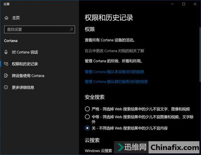 | 虽然1803版的Win 10更新后,Cortana对系统资源的要求降低了很多,但是讨厌的是在运用搜索功能时,还是优先联网去网上翻那些我们不需要的内容。所以不想本地搜索的信息上网,关闭Cortana上网就可以。 进入“设置-Cortana”后,先把能看到的选项都关掉。 然后在“选项和历史记录”中,选择“在云中更改Cortana对我的相关了解”,在弹出的界面直接选择“清除”。 最后进入“设置-隐私”,找到“语音、墨迹书写和键入选项”,将“开始了解你”处关闭,这样小娜就被彻底关闭啦。 这么一套操作之后,Cortana就再也没有网络搜索的能力鸟,但Win 10系统的搜索功能还是可以继续运用的,不喜欢自己的操作没事就被微软上网的小伙伴记得改哦! |