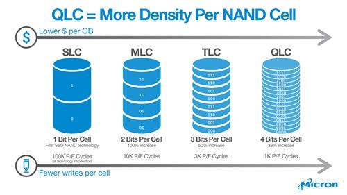 | 5月22日,Intel与美光联合发布了他们的全球首款QLC闪存,该款QLC闪存是64层堆叠的3D NAND,单颗闪存Die Size高达1Tb,是现在储存密度最高的闪存,也是全球首款正式发布的QLC闪存。同时美光发布了全球首款QLC闪存SSD——5210 ION,这是一款企业级的SATA硬盘,2.5寸7mm的盘型就可提供7.68TB的容量,这也是全球首款QLC闪存产品。 美光5210 ION的容量从1.92TB起步,最大容量是7.68TB,现在美光并没有提供这款SSD的性能参数,这款产品旨在取代数据中心的SATA/SAS机械硬盘,更小的体型可提供更大的储存密度,而且性能与功耗的表现都比机械硬盘优秀得多。 耐久度方面是大家比较担心的,美光的3D QLC闪存其实也可以达到1000 P/E,也不算太差,作为对比3D TLC闪存是3000 P/E,而3D MLC闪存则是10000 P/E,然而QLC闪存可以提供比TLC多33%,两倍于MLC的储存密度。 Intel与美光会继续研究第三代96层堆叠的3D NAND技术,可提供业界最高的GB/mm2储存密度,而美光的这款全球首款QLC闪存SSD 5210 ION估计在今年秋季开始出货,短时间来说还不用担心QLC闪存会大规模取代TLC闪存,估计现在写入性能堪忧,就像TLC闪存刚出来的时候那样,至少几年内QLC都不会占据太多的市场份额,然而长远来讲就不好说了,未来TLC会变成现在的MLC那样的高端产品,而MLC则更会变成SLC那样的稀有品。 |