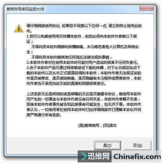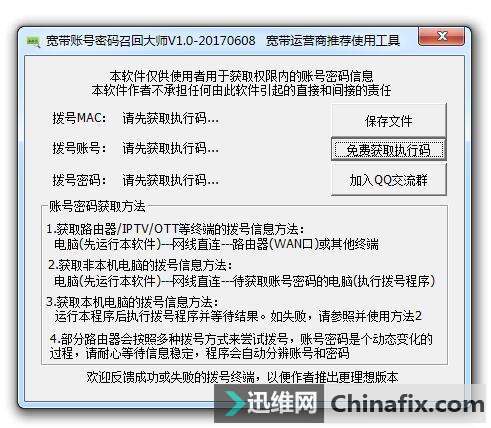 | 当我们办完宽带业务后,很多人都不重视宽带的帐号跟密码,过段时间后,发现宽带的账号密码不记得啦,这宽带帐号密码的发票基本也不见了。那么,遇到忘记宽带帐号和密码如何维修?今天跟家电维修小编学习一招简单解决宽带账号密码忘记的问题。 忘记宽带帐号和密码如何维修 出现这种情况有很多种搞定方式,最简单的莫过于打客服电话,直接重置密码了。如果电脑里面以前运用过宽带账号密码连接过,也可以用过“ADSL密码查看器”查看。还有更多的方式能搞定这个问题,这里就不一一列举了。 不过,今天小编要介绍的方式,绝逼是最简单、方便和实用的,只需要一个软件就能完整搞定。 本文主角:宽带账号密码召回大师V1.0,下载地址:http://maxcanner.blog.163.com/blog/static/4961460820175863440716/,运用它就可以轻松找回老路由器里面的宽带账号和密码。 下载召回大师,解压出如下文件。 先安装winpcap_4_1_3.exe,这个一个网络抓包程序,有了它软件才能捕获路由器拨号信息。 安装完成之后最好重新启动一下,让winpcap程序能够正常运行。 重新启动后,运行宽带账号密码召回大师。 忘记宽带帐号和密码如何维修 首先是一个警告,这是一款密码工具,小编当然要说清楚,不然这锅可不易背啊。 我相信各位对于警告中内容不会有什么异议的,点击“是”,进入主界面。 忘记宽带帐号和密码如何维修 获得到执行码之后,把路由器接上电,找根网线将电脑和路由器wan口连接起来,静等片刻就能获得到路由器里面的宽带账号和密码信息了。如果时间过长,请尝试重新启动路由器。 忘记宽带帐号和密码如何维修 基本上两三分钟就能获得到旧路由器里面的宽带账号和密码了。怎么样是不是轻松就可以搞定呢,以后再也不用担心记不住宽带账号密码了。 |