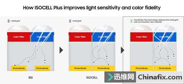 | 在全球ISP图像传感器市场上,索尼2017年份额为31.5%,三星份额为30.3%,他们的传感器运用的是ISOCell技术,今天三星推出ISOCell Plus新技术:强光也能拍出好照片 ,具备更高的色彩保真度,不损失性能的情况下可以制造出0.8um大小的像素,成为开发2000万以上像素超高辨别率相机的最佳搞定方案。 三星推出ISOCell Plus新技术:强光也能拍出好照片 图1 三星现有的CMOS传感器运用的是ISOCell技术,玩拍照的都知道,要想拍出好的照片,光线是第一位的,CMOS传感器需要尽可能地捕捉到更多的光子,并将正确的信息转换到光电二极管中。三星2013年推出了ISOCell技术,在每个相邻的像素之间增加了物理屏蔽,减少了色彩串扰,与传统BSI背照式传感器相比,ISOCell能够吸收并保存更多光线以获得更出色的图形质量。 三星推出ISOCell Plus新技术:强光也能拍出好照片 图2 现在三星又推出ISOCell Plus新技术,他们与富士胶片公司合作,运用后者开发的新材料取代了之前ISOCell传感器中运用的金属栅格,将ISOCell传感器中的光学损耗及光反射降至最低。 根据三星所说,ISOCell技术具有更高的色彩保真度,同时光敏度增加了15%,在不损失任何性能的情况下可以制造出0.8um的小尺寸像素,这使它更容易开发超过2000万像素的超高辨别率摄像头。 三星推出ISOCell Plus新技术,据悉将在日前举行的MWC上海站上展出这项技术。 |