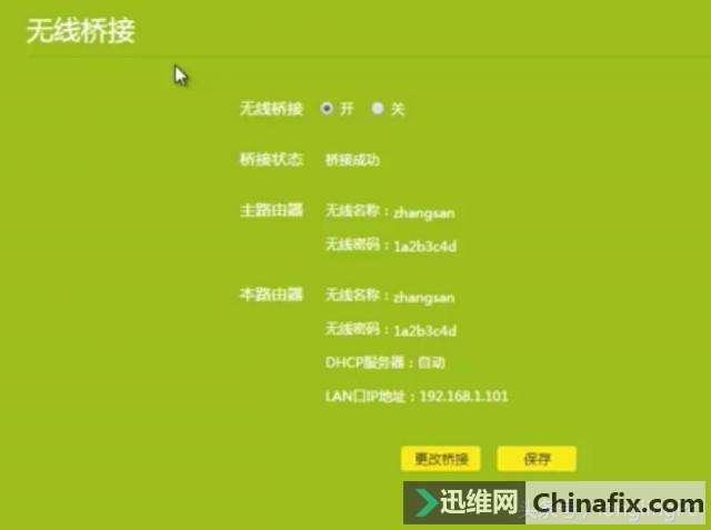 | 在人们的生活中wifi成为了家庭必备,它让我们随时随地、方便、快捷的获得自己需要的信息。但在运用过程中也会遇到些问题,如果家庭装修已完成,有些地方现有的wifi信号无法覆盖?如何扩展wifi的覆盖面积呢?我们可以用无线路由器的wds桥接功能再连接收到其他维修同行的一台无线路由器,来扩展wifi信号的覆盖面积。 如何扩展wifi的覆盖面积?用两台无线路由器WDS桥接来设置! 图一 下面我们来看看如何把两台路由器通过桥接(WDS)的连接步骤,扩展wifi的覆盖面积,要实现两台无线路由器桥接,首先要保证主路由器的上网参数已正确配置好,并能正常上网,可以从主路由器的wan口状态来确定,如下图: 如何扩展wifi的覆盖面积?用两台无线路由器WDS桥接来设置!图二 主路由器正常上网后,再来设置副路由器,主路由器和副路由器之间通过无线连接,不需要网线来连接;把电脑通过网线连接到副路由器,输入路由器的管理地址:tplogin.cn,登陆到副路由器的管理界面,第一次登陆,需要设置一个管理密码,如下图: 如何扩展wifi的覆盖面积?用两台无线路由器WDS桥接来设置! 图三 进入管理界面后, 我们点击【使用管理】,找到【无线桥接】,并点击进入,如下图: 如何扩展wifi的覆盖面积?用两台无线路由器WDS桥接来设置! 图四 如何扩展wifi的覆盖面积?用两台无线路由器WDS桥接来设置! 图五 打开【开始设置】,稍等几秒后,在路由器列表中找到主路由器的wifi名称,选中后下一步,并输入主路由器的无线连接密码。 如何扩展wifi的覆盖面积?用两台无线路由器WDS桥接来设置! 图六 如何扩展wifi的覆盖面积?用两台无线路由器WDS桥接来设置! 图七 如何扩展wifi的覆盖面积?用两台无线路由器WDS桥接来设置! 图八 副路由器获得到主路由器分配的IP地址,这个地址就是以后副路由器的管理地址,桥接成功后,副由器的无线密码与网络名称就也主路由器的相同,这样就可以实现无线漫游,当然也可以进行修改。 如何扩展wifi的覆盖面积?用两台无线路由器WDS桥接来设置! 图九 如何扩展wifi的覆盖面积?用两台无线路由器WDS桥接来设置! 图十 设置成功后,再次重新启动连接,进入副路由器【使用管理】,打开【桥接】查看桥接状态,连接成功! 如何扩展wifi的覆盖面积?用两台无线路由器WDS桥接来设置! 图十一 这样副路由器设置成功后,就可以把它放在能接到主路由器信息的边缘点,从而扩展了wifi覆盖面积。以上的操作步骤欢迎━(*`∀´*)ノ亻!大家来家电维修技术论坛交流学习! |