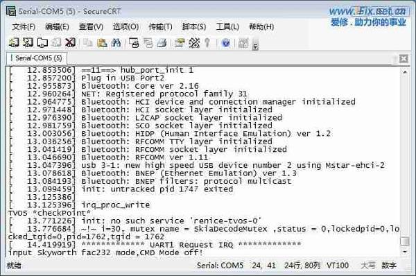 | 收到同行送来的故障机壹台创维42E510E(8S51机芯)液晶电视故障机,客户描述说液晶电视不开机,开机卡在开机画面,右下角显示“开机启动中”不能进入主页面。根据以往的维修经验,初步判断应该是主程序有问题。 创维42E510E液晶电视不开机检修思路 图1 将该机的升级文件拷贝到U盘后,按照维修手册提供的方法三:AV交流开机升级 8S50/51:将电视关机,将MstarUpgrade.bin放入U盘根目录下,按住键控板的“音量-”按键开机,开机后放开“音量-”键,系统将自动升级主程序。但试过了多次都不能进入升级界面,换U口也不行。 用U盘不能进行升级,难道是U口被关闭了,决定查看一下打印信息,在连接编程器与电视主板时,发现该机的VGA端口居然没有安装(维修手册上介绍有该端口),在VGA端口预留的位置右侧有一个6针插口,查该机的电路图得知它就是串口。 创维42E510E液晶电视不开机检修思路 图2 创维42E510E液晶电视不开机检修思路 图3 自制了3根连接线,3根线都制作成一端为带插针的公头,插到电视的主板上,另一端制成母头,插到VGA连线的插针上,确认好线序后,确认无误后,连接编程器,设置好线序,点串口打印,出现了很长的打印信息。 创维42E510E液晶电视不开机检修思路 图4 创维42E510E液晶电视不开机检修思路 图5 打印信息很长,看了半天打印信息也没看明白!请出杀手锏——SecureCRT,连接好后,进入控制台,在主板上电的瞬间不停地按回车键,出现“《MStar》#”后,输入“cu”,开始升级,此时电视出现升级进度条,指示灯红绿交替闪烁,耐心等待升级完成后,电视出现满屏雪花点了,升级成功! 创维42E510E液晶电视不开机检修思路 图6 创维42E510E液晶电视不开机检修思路 图7 但发现电视的画面极暗,且左上角显示“安全模式”,进总线查看是否电视处于安全模式。 操作方法: 按主页,进入“设置”→“系统设置”→“关于本机”→“本机信息”,在本机信息的界面下,在遥控器上按“上上下下左右左右”即可进入工厂菜单。 找到“Safemode”一看果然是“开”,将其设为“关”,电视机开机正常,液晶电视开机卡LOGO故障修复。 创维42E510E液晶电视不开机检修思路 图7 |