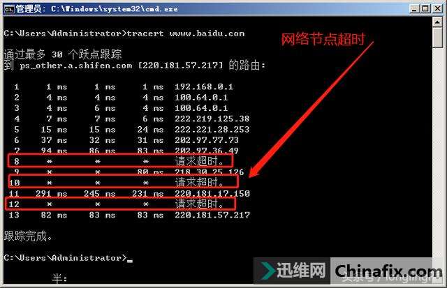 | 网络不通、卡慢、连接不稳定,时断时连是常见的网络问题;出现这些问题的原因在哪里,如何查是令人头痛的事!掌握以下5条命令的使用,所有网络问题原因,一目了然。 如何查看本机ID地址、路由器地址? 知道自己电脑的IP地址及路由器的地址是找出网络问题的基础,下面的命令都是在系统命令提示符窗口中完成。我们打开系统运行菜单,或者用快捷键ctrl+R来调出运行窗口,并输入cmd,回车,进入命令提示窗口: (一)ipconfig 在命令提示窗口中输入查看IP信息命令:ipconfig,并回车,如下图:其中192.168.0.107就是本机的IP地址;网关:192.168.0.1就是路由器的管理地址。 网络不通如何维修? (二)ping命令 ping命令是个非常实用的命令,用于确定本地主机与目的地址、设备是否能连通,可以推断tcp/ip参数是否设置正确。 如本例中网络不通,首先检查本机到路由器是否正常通讯,在命令提示符中输入如下命令: ping 192.168.0.1,当TIL后面出现数字跳动时,说明电脑到路由品之间这一段的网络通讯是没有问题的;如果出现请求超时的提示,则说明网络有问题,一般是IP地址配置、路由器、网线链路的原因导致。 网络延迟大是哪种故障? (三)tracert 网络节点追踪 当我们发现上网反应很慢,不知是那个节点的原因,如路由器、外线、DNS错误都是导致网络延迟;如我们上百度很慢,可以在命令提示窗口中输入:tracert www.baidu.com,来追踪到达目的网络所经过的路由节点,来查找网络延迟在什么地方。如下图,就可以看到有三个节点发生问题。 (四)netsh winsock reset (重置网络) QQ可以上,网页无法浏览原因何在?这个问题一般是网络DNS、IP/TCP协议端口出现问题,可在命令提示窗口中输入 netsh winsock reset来把网络恢复到初始化,重新启动电脑即可搞定,网站无法打开的问题。 (五)nslookup 域名IP互查 有的时候我们知道网站IP地址,而不知道网站的域名,或者知道域名而不知道ip地址,要实现相互IP与域名的相互转换查询,就用到nslookup命令来完成。 例如:我们要查询新浪的ip地址,输入:nslookup www.sina.com.cn即可看到: 今天常见的网络问题解答结束啦,你学会了吗? 搜索 复制 收藏 收藏 |