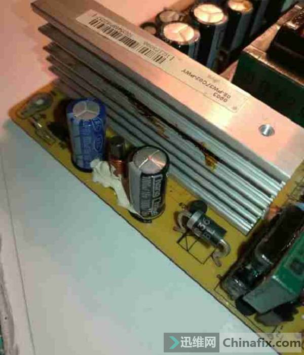 | 客户送修收到其他维修同行的一台TCL_L42E9FR液晶电视,描述的故障是扬声器无声音,耳机输出孔有声音。用户反映有时候偶尔能正常一会儿,有时候完全没声音。 因为是扬声器有问题,耳机及其他各功能正常,所以简单测量了电压,就着重检查分析对应的音频部分电路了。 测量数字功放STA333W两路输出时一路电压正常,另一路直接掉到零点几V(接近0)的电压,检查周边元件没发现异常。静音等相关供电也暂未发现异常,初步怀疑是数字功放损坏了。 因为板子的集成度比较高,而且这个机器的设计不是很便于维修。虽然不用拆开大后盖就能检修,但是受线缆影响排查非常不方便,也不容易观察板卡情况。因此准备先将主板彻底拆出来,但是在拆下屏线后声音突然正常! 排查屏线与逻辑板,单独连接逻辑板不连接屏声音正常。对比测试连接屏和不连接屏时逻辑板的基准电压发现屏供电会从12伏分几个点缓慢下降,当下降至10伏不足11伏时开始出现无伴音问题,但这时屏仍然能够正常工作,其后电压有波动恢复的情况,但声音不会正常。 TCL_L42E9FR液晶电视扬声器无声音如何维修 图1 TCL_L42E9FR液晶电视扬声器无声音如何维修 图2 这时大致思路明确,是供电有问题。测到主板的12V电压,同样的波动。拆出电源板仔细检查发现有几个1000UF16v电容怀孕,更换怀孕电容,重新检查试机,问题解决。 |