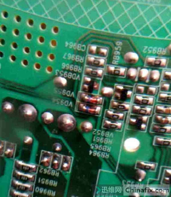 | 乡镇同行转来收到其他维修同行的一台康佳LED42M3500PDE液晶电视机,说是二次开机黑屏,有时开机又能正常,工作故障不定时也无规律。同行100多里路拖来的,他也知道这故障也不是一时半会能修好的,放下机器留下电话就走人了,说是一周后等我消息。 康佳LED42M3500PDE二次开机黑屏实例维修 图1 拆机发现有主板及电源背光两块板,主板35017185,电源背光板型号KPS+L100C2-01。没有原理图纸,只能慢慢测试电压分析了。 康佳LED42M3500PDE二次开机黑屏实例维修 图2 康佳LED42M3500PDE二次开机黑屏实例维修 图3 在故障出现时测主板开机指令PS-ON有3.5V到电源板,测板上标识24V 12V分别只有16.5V 6.5V,明显处于待机状态。再顺着主板PS-ON指令线路跑电源板上到VDB953时(外形像三极管,实际是双二极管并联结构)阳极有3.3V,再测阴极时突然背光亮了,用表笔尖戳下VD953(BAV70)阴极故障重现,用放大镜看原来VDB953阴极出厂时就根本没有焊锡! 那么这几年客户正常收看是靠VD953阴极压在铜皮上,时间长了可能是有氧化接触不好了,所以才造成这个故障表现为,补焊VDB953阴极机器完全正常。 康佳LED42M3500PDE二次开机黑屏实例维修 图4 康佳LED42M3500PDE二次开机黑屏实例维修 图5 至此,康佳LED42M3500PDE二次开机黑屏实例维修结束! |