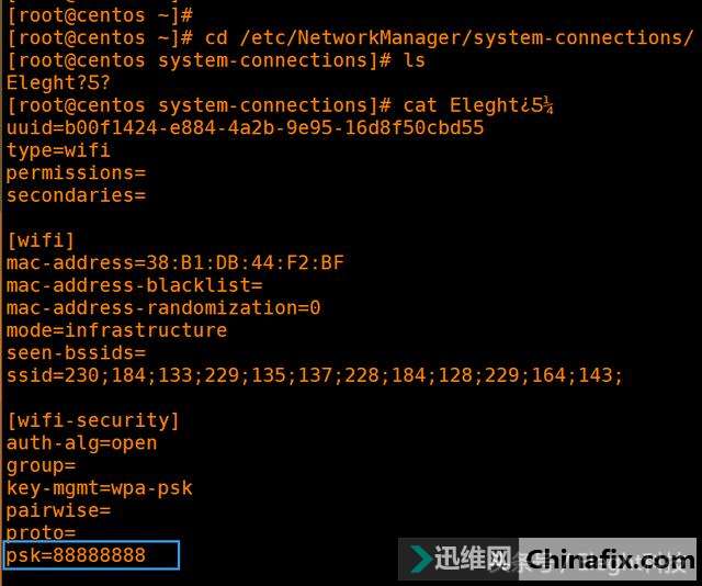 | 本期Eleght科技给大家分享一下如何在Linux系统中查看已经连结果的无线WiFi密码,主要有两个方式,第一种是在字符界面进行查看存放无线WiFi密码的文件,并且这个文件是以明文密码显示的,第二种方式是在具备图形化的界面直接进行查看即可,相似于Win系统中的查看方式。 Eleght科技 但是如果你的Linux系统是安装在虚拟机中的,那就无所谓了,因为本机和虚拟机中的系统是共用一个网络的,你本机连接的是无线WiFi,其虚拟机也会显示连接的有线网络。如果你的Linux系统是安装在物理机上则可以用这种方式,下面小E将详细介绍查看方式。 1-1 详细步骤 1、字符界面查看 我们的无线WiFi文件都存在于etc/NetworkManager/system-connections这个目录下,我们键入以下命令: 如图1-2所示,小E用蓝色圈出的地方,就是密码所在的位置,因为编码的关系,所以最后的两个汉字出现乱码的现象。 1-2 2、图形化界面查看 我以Ubuntu系统为例,其他版本的Linux查看方式也大致相同,我们依次找到 设置>网络>无线网络>无线WiFi名称>设置 就可以找到,如图1-3所示 1-3 接着我们选择无线,最后选择设置,如图1-4所示 1-4 最后在弹出的页面中,我们将密码设置为显示即可查看我们连接的密码,因为我这里只连接过一个无线WiFi所以在选择无线这个页面中只有这一个无线WiFi,如果有多个的话,依然是可以自动保存其连接信息。如图1-5所示,我们已经查看到了这个无线WiFi的密码为8个8,小E的路由器密码这么多年以来都是这个密码,但是大家为了安全起见不要轻易设置如此简单的密码哦! 1-5 好了,本期的Eleght科技分享的这篇文章就介绍到这里,我是小E,咱们下期见! Eleght科技 |