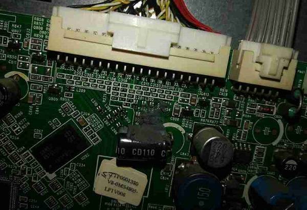 | 收到同行送来的故障机壹台TCL L42P60FBD液晶电视,故障为花屏,图像不正常,看故障表现为逻辑板、屏线接口和主板都有可能导致,液晶电视花屏如何维修?接下来跟随小编一起来看看吧。 液晶电视花屏如何维修?TCL L42P60FBD液晶电视花屏检修思路 图1 液晶电视花屏如何维修?TCL L42P60FBD液晶电视花屏检修思路 图2 拆机拔下屏线直接插到主板测试工具上测试主板好坏,接好通电调整不出正常图像,显示故障和原机屏基本相同,故障锁定在屏线和主板上。清洗屏线接口测量屏线排除屏线的可能,故障部位确定在主板上! 先测量主芯片到屏线接口上排阻没发现异常,测量时看到屏线接口附近有一堆胶,遇到“发财胶”了?剥开胶下面有5只电感,每只电感分两组,其中L200的一边已经开路,另一边正常。 液晶电视花屏如何维修?TCL L42P60FBD液晶电视花屏检修思路 图3 通电测量正常,一边电感两端都是2.5V电压,开路一边只有一端是2.5V,短接开路一边的电感再试机图像正常。 液晶电视花屏如何维修?TCL L42P60FBD液晶电视花屏检修思路 图4 液晶电视花屏如何维修?TCL L42P60FBD液晶电视花屏检修思路 图5 长时间试机图像也无异常,至此,TCL L42P60FBD液晶电视花屏故障修复。 液晶电视花屏如何维修?TCL L42P60FBD液晶电视花屏检修思路 图6 |