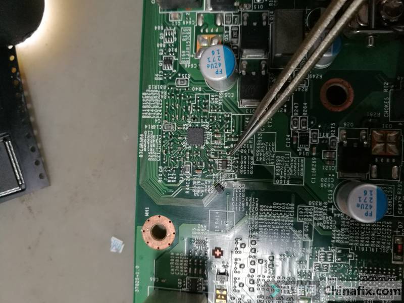 | 收到客户送来的联想IH81M,描述故障为触发不显示,插诊断卡不跑码,无复位,现在开始维修。 联想IH81M触发不显示无复位图1 故障分析维修: 看看板型再看看IO,在此之前维修过收到其他维修同行的一台一模一样主板换IO修复的,当时觉得是巧合没有详细记录,非常肯定的IO坏,定了IO更换就好了,正好还有一个备用的。 联想IH81M触发不显示无复位图2 为了维修效率,三板斧直接换掉,通电开机居然还是老样子。 联想IH81M触发不显示无复位图3 找出图纸 MS-7825 按时序走走吧,VRM_PGD直接找,看到Q9 3904好眼熟。 联想IH81M触发不显示无复位图4 心想不会这么巧吧,回想起之前IH61M无复位维修,极其相似,上电测试Q9 3脚电压1.1V多,拆旧换新。 联想IH81M触发不显示无复位图5 解决。 联想IH81M触发不显示无复位图6 联想IH81M触发不显示无复位图7 总结:IH81M这个现象是不是通病还要验证。故障跟IH61M主板“一毛一样”。主板是14P供电特地做了一条免得换电源。 联想IH81M触发不显示无复位图8 联想IH81M触发不显示无复位图9 联想IH81M触发不显示无复位图10 搜索 复制 |