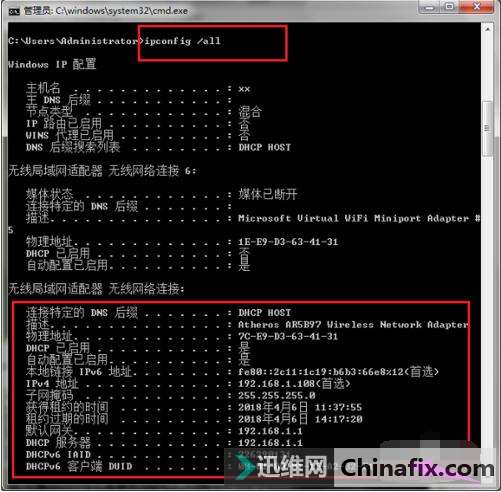 | 在电脑中通过命令提示符执行命令ipconfig可以查询电脑ip、mac等配置信息。ipconfig命令是调试计算机网络的常用命令,通常大家运用它显示计算机中网络适配器的IP地址、子网掩码及默认网关。下面,就跟大家介绍ipconfig命令怎么使用。 ipconfig命令怎么使用 在我们的电脑上按win+R键,打开运行,输入cmd,点击确定,进去命令提示符 ipconfig命令怎么使用 图1 命令电脑图解1 进去命令提示符之后,我们输入ipconfig,按回车键,进行查看电脑的ip地址 ipconfig命令怎么使用 图2 ipconfig电脑图解2 输入ipconfig /all命令,按回车键,进行查看电脑的ip地址,mac地址,其他网卡信息 ipconfig命令怎么使用 图3 命令提示符电脑图解3 输入ipconfig /release命令,按回车键,进行释放电脑的ip地址,这时候会断一会儿网,会自动重新获得ip地址 ipconfig命令怎么使用 图4 ip电脑图解4 输入ipconfig /renew命令,按回车键,可以进行重新获得ip地址 ipconfig命令怎么使用 图5 命令电脑图解5 输入ipconfig /flushdns命令,按回车键,可以进行刷新DNS缓存 ipconfig命令怎么使用 图6 以上就是对于ipconfig命令怎么使用的解答了,觉得有用可以收藏! |