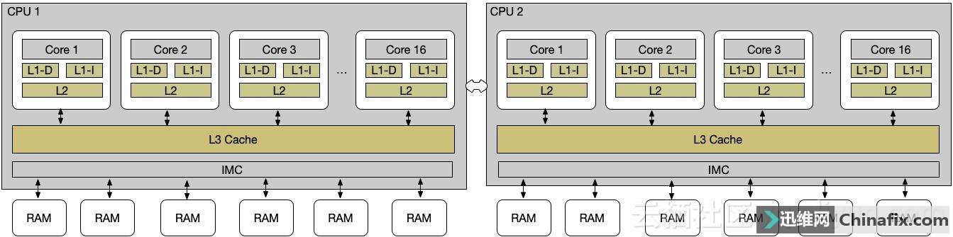 | 收到其他维修同行的一台服务器,不管是物理机还是虚拟机,必不可少的就是内存,内存性能指什么?又是如何来衡量呢。 1. 内存与缓存 现在比较新的处理器一般都有三级缓存,L1 Cache(32KB-256KB),L2 Cache(128KB-2MB),L3 Cache(1M-32M)。缓存慢慢变大,处理器在取数据的时候,优先从缓存去取数据,取不到才去内存取数据。 内存性能指什么 图1 2. 内存与时延 显然,越靠近处理器,取数据的速度越块,通过LMBench进行了读数延迟的测验。 内存性能指什么 图2 从上图可以看出: Intel(R) Xeon(R) Platinum 8163 处理器 @ 2.50GHz 这款处理器的L1D Cache,L1I Cache为32KB,而L2 Cache为1M,L3为32M;在对应的Cache中,时延是稳定的;不一样缓存的时延呈现指数级增长; 所以我们在写业务代码的时候,如果想要更快地提升效率,那么使得计算更加贴近处理器则可以获得更好的性能。但是从上图也可以看出,内存的时延都是纳秒为单位,而实际业务中都是毫秒为单位,优化的重点应该是那些以毫秒为单位的运算,而内存时延优化这块则是长尾部分。 3. 内存带宽 内存时延与缓存其实可谓是紧密相关,不理解透彻了,则可能测的是缓存时延。同样测验内存带宽,如果不是正确的测验,则测的是缓存带宽了。 为了了解内存带宽,有必要去了解下内存与处理器的架构,早期的处理器与内存的架构还需要经过北桥总线,现在处理器与内存直接已经不需要北桥,直接通过处理器的内存控制器(IMC)进行内存读取操作: 那对应的内存带宽是怎样的呢?测验内存带宽有很多很多工具,linux下一般通过stream进行测验。简单介绍下stream的算法: 内存性能指什么 图3 stream算法的原理从上图可以看出非常简单:某个内存块之间的数据读取出来,经过简单的运算放入另一个内存块。那所谓的内存带宽:内存带宽=搬运的内存大小/耗时。通过整机合理的测验,可以测出来内存控制器的带宽。下图是某云产品的内存带宽数据: -------------------------------------------------------------Function Best Rate MB/s Avg time Min time Max timeCopy: 128728.5 0.134157 0.133458 0.136076Scale: 128656.4 0.134349 0.133533 0.137638Add: 144763.0 0.178851 0.178014 0.181158Triad: 144779.8 0.178717 0.177993 0.180214------------------------------------------------------------- 内存带宽的重要性自然不言而喻,这意味着操作内存的最大数据吞吐量。但是正确合理的测验非常重要,有几个注意事项需要关心: 内存数组大小的设置,必须要远大于L3 Cache的大小,否则就是测验缓存的吞吐性能;处理器数目很有关系,一般来说,一两个核的计算能力,是远远到不了内存带宽的,整机的处理器所有运行起来,才可以有效地测验内存带宽。当然跑单核的stream测验也有意义,可以测验内存的延时。 4. 其他内存与NUMA的关系:开启NUMA,可以有效地提供内存的吞吐性能,降低内存时延。stream算法的编译方式选择:通过icc编译,可以有效地提供内存带宽性能分。原因是Intel优化了处理器的指令,通过指令向量化和指令Prefetch操作,加速了数据的读写操作以及指令操作。当然其他C代码都可以通过icc编译的方式,提供指令的效率。 以上就是关于内存性能指什么问题的解答。 |