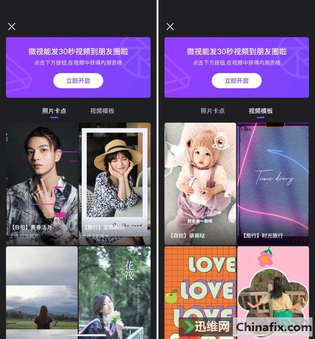 | 拿起手机拍下同事诞生表情包的瞬间、精心拍摄旅游回忆视频、在演唱会现场录制偶像的表演…… 准备发到朋友圈收获超多赞,却被「朋友圈只能发 15 秒以内的视频」实力劝退,要么删减或者拆成一个个短视频刷屏发。相信你们都会和我一样,在内心深处发出怒吼:15 秒,完全不够用啊。 ▲图片来自 Giphy 有什么办法发更长的视频吗?最近微视 app 就新上线了一个功能,不仅能帮你发 30 秒朋友圈视频,还能让你快速制作高大上的视频!(现在该暂未向所有用户开放功能,文末可获得体验资格,抢先试玩) 有了这个功能,你只需用微视 app 拍摄视频,或者直接把拍好的视频上传,就可以同时同步到朋友圈,并且在同步时最长支持 30 秒视频,比原来的 15 秒整整翻了一倍。 旅游的时候拍拍拍,九宫格加拼图都放不下好看的照片,现在用 30 秒朋友圈视频,就能快速生成高大上的旅行游记。 除了游记,日常生活的点点滴滴,也能更完整的表现,晒萌宠,晒厨艺。 此外,通过微视来分享视频到朋友圈,除了支持的视频时长够长之外,你还可以利用微视提供的视频制作功能,来快速生成一支好看的视频。上述的视频都是用微视制作,简单粗暴,小白也能做出高大上的视频。 照片卡点功能可以让你快速为 6-10 张照片生成一支独一无二的视频。 视频模板则更好理解了,快速为你的视频套上模版滤镜、文字、剪辑和配乐,一键生成精美视频。 并且,这两个功能下都提供了大量的模板,如【自拍】萌萌哒、【旅行】时光旅行、【萌宠】拍立得等,只需挑选一个喜欢的模板即可。 是不是想要亲测一下这个 30 秒朋友圈功能呢?现在这个功能并没有向所有用户开放,如果你想抢先运用的话,可以通过下图指示获得内测资格。 |