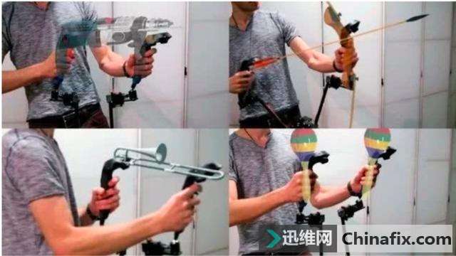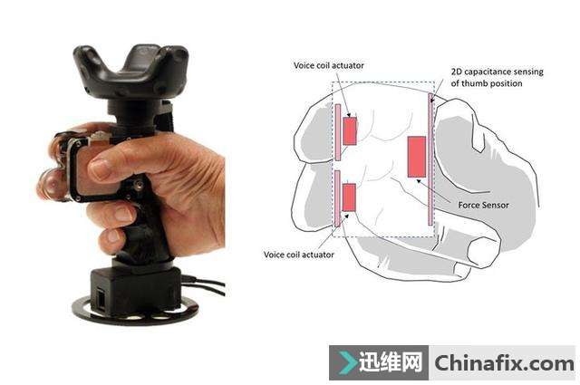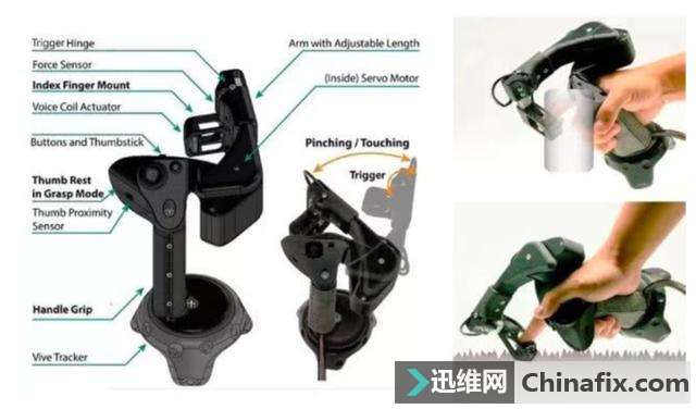 | 暴雨中潮湿的土地、雪山峰顶冰凉的岩壁、爱慕之人像麦浪一般起伏的身体…… 你可能曾把不可触摸之物在脑海中幻想过一万遍,但没想到这很快能成真。 霓虹国前阵子就推出了一项关于「虚拟触觉」的新技术。它由日本产业技术综合研究所的研究人员中村则雄近日发明,能搞定 VR 和 AR「看得见摸不着」的问题。 虚拟触觉的本质在于「欺骗」大脑。这一款小巧的手握式设备利用了这点,只要将它一端连接到手机、电脑等设备,人们握住它就能感觉到轻微振动。 ▲ 虚拟触摸设备 这个轻微振动并不简单:当左右前后拉伸移动设备时,就像在拉拽皮筋或按压弹簧,它能发出特殊的振动波来刺激皮肤,传递信号「欺骗」大脑,然后你就能选择各式各样的触觉体验,满足一些大胆的想法。 不过记者现场的体验很简单:握住这款小型设备时,当电脑呈现出砂石或者粗糙壁纸的图案时,移动手持设备就像触摸到真实的物体。 其实,这款设备只是掀开了虚拟世界的一个小入口。 虚拟触觉的「奥秘」 现在虚拟现实的样子就是:听得到、看得到,但感觉不到任何东西。 想象一下:在虚拟世界中,我们伸手想温柔抚摸的人,伸过去却只能穿过泡影;我们将一块岩石砸入海浪之中,但像搬起一块棉花一样毫无知觉;我们在高楼厦宇间飞身跳跃,但是却无比清晰地感觉到自己只是在平地奔跑…… 这是一种诡异的体验,但人们很容易就沉浸在现有的新鲜感中失去判断。 对听觉和视觉来说,每秒 24 帧的电影就能欺骗眼睛和耳朵,但是虚拟触摸很难被大脑当真。 触摸感形成于一片非常复杂的细胞网络,它可以检测到不一样类型的物理接触,以告诉你柜子要用多大力度打开,电梯的按钮要怎样才能启动等等,这些信息都需要基于与物品的互动,并将意识源源不断综合起来流向大脑。 因此虚拟触觉就得让你的手指「接触」到物体表面,并给你足够多的信息让你的大脑相信物体就在那里。 这个信息就来源于我们每天与真实物体触摸交互时产生的振动。 ▲ Plexus 虚拟现实手套 我们的手指可以感觉到 1000 赫兹的振动,这让我们能在触摸不一样虚拟物体时感受到不一样的纹理,粗糙的石头、光滑的纸张、柔软的毛衣都会产生不一样的振动。 这种振动比耳朵听到的频率低,但跟听到音阶中的不一样声音一样,大脑也会将每种材料触摸感放到特定的频率组合中,因此只要将振动频率的混合制造出来,就可以欺骗大脑我们正在「触摸」这件物体。 ▲ Oculus 与 Facebook 共同打造名为 HapticWave 的实验性装置,透过不一样频率振动让运用者手掌感受到不一样「触感」 英国触觉虚拟体验初创公司 Tactai 首席科学官 Kuchenbecker 还和她的团队创建了一个触摸感觉数据库,现在已收集了 100 多种感觉。 通过扫描物体,他们不到一分钟就能收集触觉的重要特征数据,并且通过专有算法,将库中的感觉分配为不一样的触觉对象属性(HOP),包括表面的柔软度、纹理、摩擦力、敲击感等等,甚至基于视觉识别,他们还可以将现有视频游戏中的物体转换出触摸感,并从他们的数据库中找到对应的纹理,从而让用户体验到真实触感。 逼真的虚拟现实系统,应该包括三个本质特点:沉浸性、交互性、想象性。实现了这三点,再结合人体其余几种感官,我们就能真正达到自然、真实、无限的虚拟体验。 ▲ 一种名为 FlyJacket 的虚拟可穿戴设备,运用者扭动身躯就能体验到飞翔的感觉. 图片来自:EPFL LIS/YOUTUBE 现在有什么可「摸」的? 只是,现在的硬件都不够以实现全面的虚拟感官。 但匮乏就是一切行为的源动力,各大公司都在不断尝试着更多新的可能性。 现在市面上和在研的虚拟触觉设备主要分为两类:手持式和穿戴式。 手持式 上文中村则雄发明的设备就属于手持式,相似的还有微软 5 月新推出的名为 TORC(Touch hard Controller)的小型实体设备。 它主要通过内部触摸和力传感器来检测移动拇指的位置,其中有两个执行器,当拇指移动旋转或按压物体时,能感受到运动和阻力、纹理和深度,以及一种独有的顺从感:当你按压对象时,对象表面确实出现了下凹感,这就是一种力的顺从感。 这将赋予与现在商业 VR 或 AR 控制器完全不一样的高度灵活的体验。因为这种自然的动感,能让人们无需切换模式,就能挤压虚拟对象或者在手中揉捏它们。 例如,当你通过 TORC 抓起虚拟钥匙时,能够将钥匙插入钥匙孔并转动开门;当你抓取一个物体,但拇指间的力太小不够以抓握时,TORC 的传感器就能感应到并让物体掉落,当你太过激情大力挤压某样物体时,画面可能会提醒你,轻一点。 大部分原型设备都只能模拟出特定的质地、温度、重量等感觉,但微软一直在探索如何将现有技术使用到手持式 VR 控制器上,以产生多种触觉感受。 他们开发的第一款多功能触觉控制器叫 CLAW,它有一个独特的机械臂,能将模拟力反馈到用户的手掌和手指上,食指尖端下方还有个音圈,能产生振动模仿物体表面的结构触感。 而后推出的 Haptic Wheel 触觉控制器,能进一步模拟食指对虚拟物体的材料和表面摩擦的触觉体验。其中的驱动转轮,能通过旋转来模拟指尖和虚拟物体表面的摩擦,当你放纸牌、按按钮、推动物品时都能有接近真实的触感。 为了解放人们的双手,微软又推出了 Haptic Links,它由几种类型的连接器组成,可以动态地改变用户双手间的力量,能加强用户与虚拟世界的交互,模拟更大范围