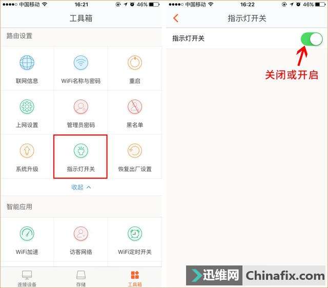 | 晚上关灯睡觉时 你们房间的路由器会 bling bling bling地闪个不停么? 虽然它都是默默的独自“狂欢” 但依然会打扰到 努力想进入梦乡的你 不是在努力熬夜玩手机么? 那问题来了 如何在不影响路由器正常工作的情况下 关闭它的指示灯呢? 如果你是腾达AC系列路由器的用户 那么恭喜你 可以通过2种方式把它关闭 01定时开关 1.手机、电脑连接到路由器(有线或无线WiFi都可以),打开浏览器,在地址栏输入www.tendawifi.com,按Enter进入路由器的设置界面。 2.选择左侧菜单栏的“智能省电”或“高级设置”,找到LED灯控制,选择“定时关闭”并设置“关闭时段”,例如设置了睡觉时间:晚上11点到上午7点,那么,在设置的这段时间内,路由器指示灯所有熄灭,其他时间,指示灯正常亮起。 02随开随关 手机连接到路由器的无线WiFi,打开我们的“Tenda 无线WiFi”APP,在点击右下角的“工具箱工具箱” > “指示灯开关”,可以随时开启或关闭LED指示灯。 那万一你家的路由器不是腾达的 这里有一个“万能”的方式 适合任何型号和品牌的路由器 . . . 找一块布盖上去 完事! |