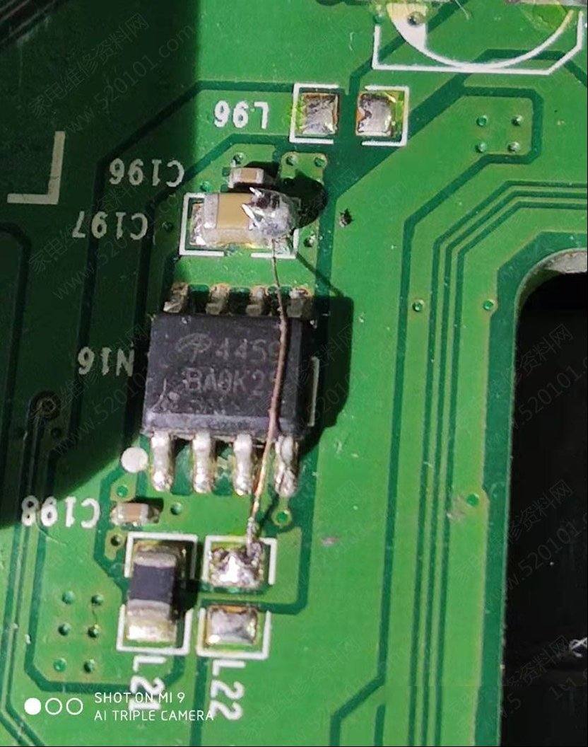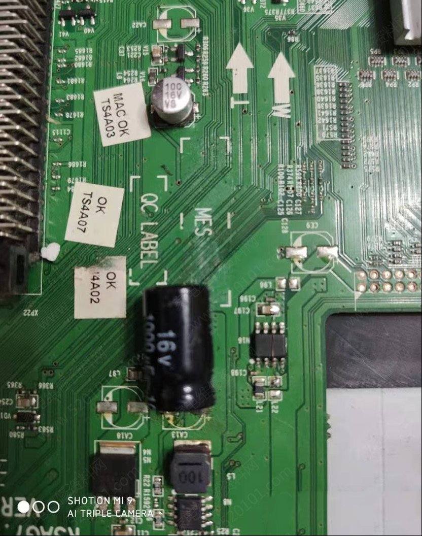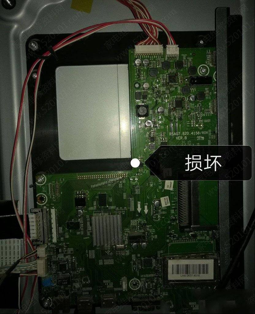 | 收到同行送来的故障机壹台海信LED40K16P液晶电视,故障表现为出现图像跳动,如下图1所示,经过请教同行之后,说是主板问题,给逻辑板供电偏低,只有10V,并且波动,顺着线路找,损坏器件见图2所示,直接短接之后故障修复。 |