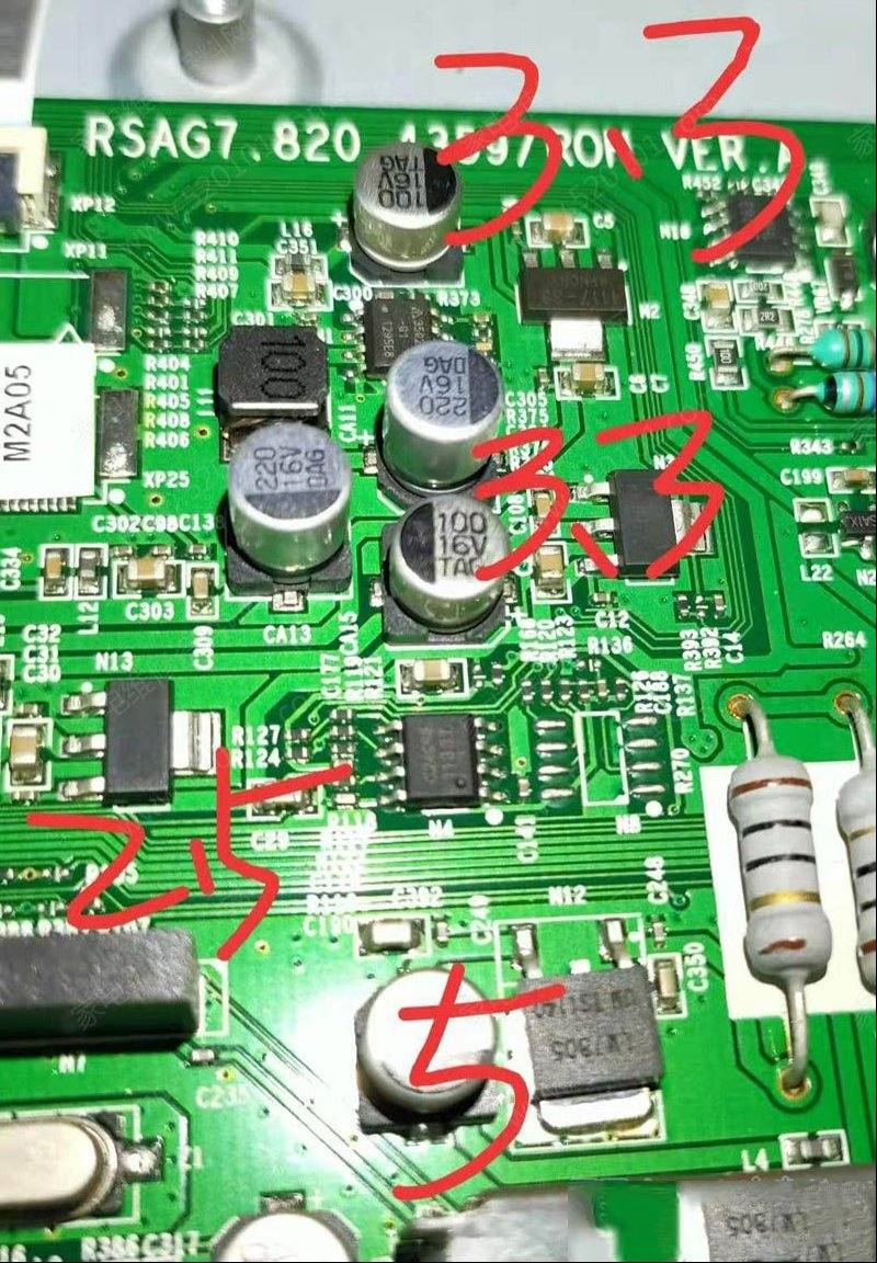| 收到同行送来的故障机壹台海信LED32K01液晶电视,故障表现为蓝灯亮不开机。反复开机有时候又能开机,开机之后可以长时间播放没有任何问题。看了一下网上有好几篇关于32k01类似的问题,貌似这款海信蓝灯亮不开机有通病,测了一下电源电压12V和开机3.2V正常,说明主板已经发出正常开机指令。(待机是7V左右)。 再测量主板上面,各个供电电压12V。3.3V-2.5V、1.8V、5V都正常。其中一个3.3V实际测量是3.27V忽略一过,先软后硬换25q32数据芯片还是一样,心想麻烦了。 想想有时候又能正常开机于是反复开关机,想正常开机的时候再测一下各种电压做个比较。其中测量时发现一组3.3V芯片输出电压为2.6V,原来问题在此哈哈立马更换3.3芯片。结果还是差不多,只是能够开机的次数增多。另外并联一个3.3V的电源小板还是如此,后来多次对比能够正常开机的电压此芯片输入端电压是5.2V。不能开机是4.2V顺藤摸瓜。此处5.2V电压是来自4459芯片,测量4459芯片输入端电压5.3V正常,看来真正的问题在此。芯片变质了,立马更换。反复几十次开关机测试都正常开机。问题终于排除,理论上说4.2V输入电压3.3V输出电压也能够正常,正是因为忽略了这一点细节,所以走了不少弯路,所以说每一个维修工都不能忽略任何一个细节,也许就是你忽略的这个细节就是问题的根源。 |