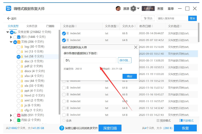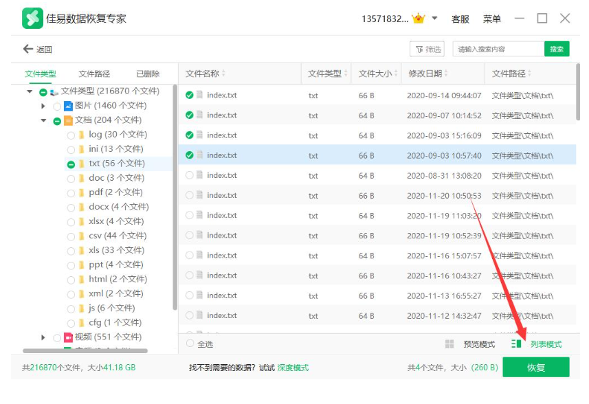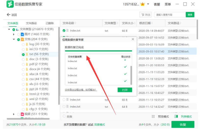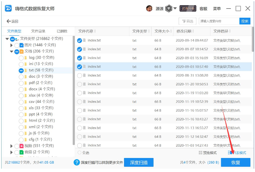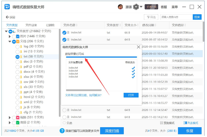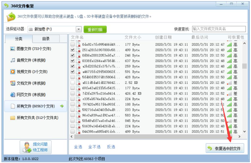 | 有网友的电脑出现系统问题,智能通过重装系统来解决,重装后发现系统内原来的文件都没有了,咨询电脑重装系统后文件还能恢复吗,下面我们就来看看电脑重装系统后恢复文件的方法。 工具/原料: 系统版本:win10专业版 品牌型号:华硕UX30K723A 软件版本:小白数据恢复v1.1 & 用嗨格式数据恢复大师v2.8.1433.405& 佳易数据恢复专家v1.0.1060.352 & 360安全卫士v1.0.0.1022 方法/步骤: 方法一:使用小白数据恢复软件恢复文件 1、首先下载安装小白数据恢复软件,双击打开,点击要恢复的磁盘,点击开始扫描。 2、选择深度数据恢复,点击开始扫描。 3、选中需要恢复的文件,点击立即恢复。 4、选择好文件保存路径后点击确定。 5、提示导出成功,点击确定。 6、查看恢复好的文件。 方法二:使用嗨格式数据恢复大师 1、运行嗨格式数据恢复大师,选择需要的恢复模式。 2、然后选择原文件的存储位置,选好点击“开始扫描”。 3、数据扫描完成后,选择需要恢复的文件,点击下面的“恢复”。 4、还需再设置下恢复文件的存储位置。 5、点击确定后,等待文件恢复完成即可。 方法三:使用佳易数据恢复专家 1、运行佳易数据恢复专家,选择软件中的恢复模式。 2、然后选择丢失文件原来的保存位置,点击“开始扫描”。 3、数据扫描完成后,找到要恢复的文件,点击“恢复”。 4、设置下恢复文件的保存位置,点击确定。 5、最后等待文件恢复完成即可。 方法四:使用360安全卫士 1、打开360安全卫士,点击“功能大全”,选择“数据”下的“文件恢复”。 2、然后选择需要恢复的驱动,选好点击“开始扫描”。 3、扫描完成后,选择需要恢复的文件,点击“恢复选中的文件”。 4、还需要设置一下恢复文件恢复保存的位置。 5、设置好后,原文件即可恢复完成。 总结: 1、使用使用小白数据恢复软件恢复文件 2、使用嗨格式数据恢复大师恢复文件 3、使用佳易数据恢复专家恢复文件 4、使用360安全卫士恢复文件 |