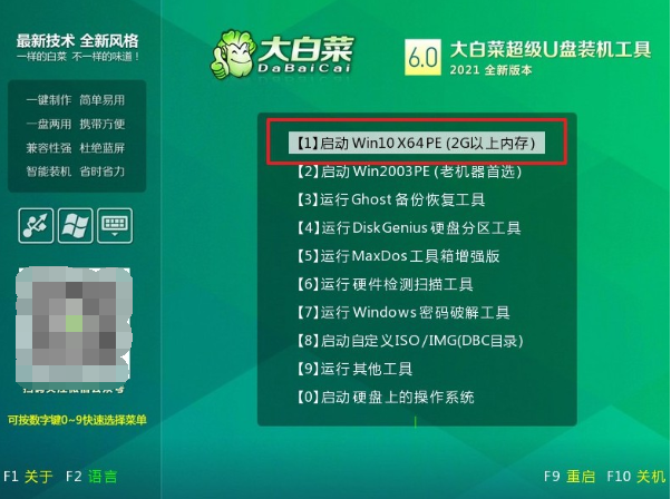 | 有网友想要通过u盘重装系统的方式来修复一些系统故障问题,听说大白菜重装系统工具比较好用,因此有些网友想了解大白菜怎么重装系统。操作方法不难,下面小编就给大家演示下大白菜重装系统教程步骤。 工具/原料: 系统版本:windows10系统 品牌型号:戴尔灵越15 软件版本:大白菜u盘装系统6.0.2&小白一键重装系统2290+1个8g以上的空白u盘 方法/步骤: 方法一:使用大白菜制作u盘重装系统 1、我们可以先自行上网查找并下载大白菜U盘启动盘制作工具安装。 2、然后下载Windows镜像系统,保存在电脑中除系统盘外的其他分区中,或者等u盘启动盘制作完毕后,拷贝到U盘中。打开大白菜U盘启动盘制作工具,点击一键制作成U盘启动盘即可。 3、然后自行查询要安装的电脑U盘启动快捷键,或者查阅以下表格得知。 4、插入做好的u盘启动盘到要安装的电脑,重启电脑出现开机画面时,通过U盘启动快捷键进入启动设置界面,选中U盘回车进入大白菜winpe界面。 5、选中第一项Win10X64PE(2G以上内存)回车进入pe桌面。 6、 打开大白菜一键重装软件,选择需要安装的windows镜像系统安装在C盘,点击执行。 7、默认勾选,点击是。 8、等待电脑自动重启,及时拔出U盘,部署完成进入新系统桌面即可。 方法二:借助小白工具制作u盘重装系统(推荐) 相比方法一,小编更推荐大家使用方法二的操作方法,不需要额外去下载新的系统镜像,而且小白一键重装系统工具版本更新,也更加安全,操作更适合新手用户。具体的步骤如下: 1、先在电脑上安装小白一键重装系统工具,插入u盘进电脑,选择u盘重装系统模式进入。 2、选择需要安装的系统,点击开始制作启动盘。 3、等待软件自动下载系统镜像和驱动等文件,当制作完成后,先预览需要安装的电脑主板的启动热键,再拔除u盘退出。 4、插入u盘启动盘进电脑后,开机不断按启动热键进启动界面,选择u盘启动项进入到pe选择界面,选择第一项pe系统进入。 5、在pe系统内,小白装机工具打开安装系统到c盘,安装完成后,拔掉u盘重启电脑。 6、等待进入到新的系统桌面即安装成功。 拓展知识:更多电脑重装系统的相关内容 电脑重装系统软件哪个好用 老电脑开不了机怎么重装系统教程 注意事项:注意在安装系统之前,备份好系统盘的重要资料,避免导致丢失。 总结: 以上便是大白菜重装系统教程,以及小编给大家推荐的好用的小白一键重装系统的使用方法,无论电脑是否能进系统都适用,有需要的小伙伴可参照教程操作哦。 |