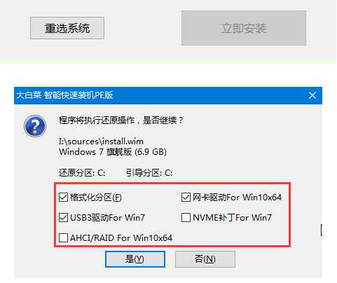 | 很多小伙伴问大白菜重装系统难不难,其实重装系统自己都是可以进行操作的,新手小白都是能够独立完成的,今天小编就来教大家关于大白菜如何重装系统,有需要的可以了解一下。 工具/原料: 系统版本:Windows系统 品牌型号:戴尔 灵越15 软件版本:大白菜超级U盘装机工具v6.0 方法/步骤: 方法一:大白菜u盘装win7系统 1、大白菜如何重装系统呢?我们首先需要在电脑上从大白菜官网下载安装大白菜装机工具,按照步骤制作一个大白菜U盘启动盘;U盘制作完成之后,根据自己电脑型号的U盘启动快捷键。点击重启电脑,在重启电脑的过程中不断地按下快捷键,电脑界面将会显示启动项设置,将U盘设置为第一启动项就可以啦; 3、此时将会进入大白菜pe系统界面,选择“启动Win10 X64 PE(2G以上内存)”; 4、如果大家没有准备好系统镜像的话,点击打开大白菜一键重装后,选择在线系统下载就可以啦; 5、鼠标点击“系统下载”之后,电脑会出现Windows系统在线下载的窗口界面,选择本次需要的系统下载安装; 6、系统下载完成之后,点击“立即安装”;弹出的一键还原的提示窗口界面,点击“是”; 7、系统安装完成之后,点击重启电脑; 8、系统下载并安装完成之后,再次点击重启电脑,电脑将会进行系统的部署。这样系统就会激活并安装驱动程序,进入安装好的系统就表示成功了。 方法二、大白菜u盘装win10系统 1、 我们首先将U盘插入电脑,开机或重启电脑,出现开机画面时,然后不断地按U盘启动快捷键进入启动项设置,将U盘设置为开机首选进入大白菜pe系统之后,选择“启动Win10 X64 PE(2G以上内存)”选项并按回车确认。 2、 鼠标双击打开大白菜装机软件,在“映像路径”中选中镜像文件并选择win10系统安装位置,通常情况下都是C盘,点击“执行”。 3、 然后将会弹出还原窗口界面,默认选项点击“是”按钮。 4、耐心等待win10系统安装完成然后重启电脑,此时要拔掉U盘,以免重启电脑时再次进入PE系统界面。 5、 重启电脑之后会进入系统部署阶段,耐心等待部署完成进入win10系统桌面即可正常使用。 总结: 关于大白菜重装系统教程的全部内容小编就介绍到这里。不会操作的小伙伴可以参考上面的文章进行安装。希望以上内容可以对大家有所帮助。 |