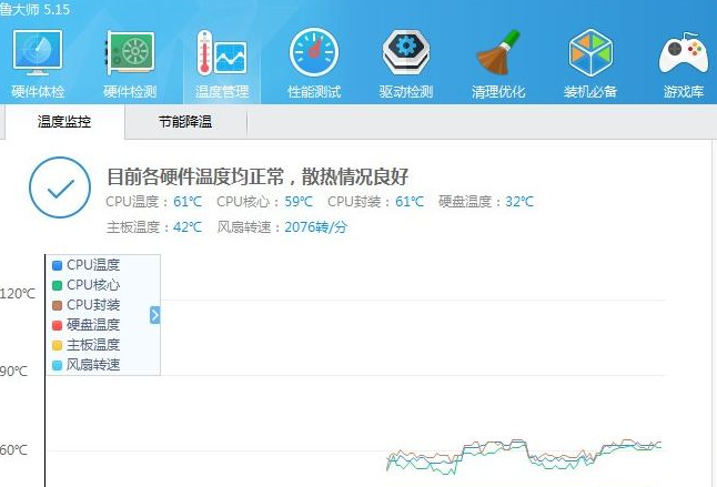 | 随着电脑的使用率越来越高,我们有时候可能会遇到对win10系统看cpu温度进行设置,如果我们需要对win10系统看cpu温度进行设置时,要如何维修win10系统看cpu温度呢? win10系统看cpu温度的详细步骤: 1、下载鲁大师的安装程序到桌面上; 2、双击安装包,勾选 “同意用户许可协议”,然后点击开始安装,等待安装的完成; 3、双击桌面的快捷图标,打开鲁大师程序。 4、用鼠标点击“温度管理”,跳转到一个新的界面中去,这个里面有很多温度的参数; 5、在我用红色框圈起来的部分,就可以看到cpu的温度,核心的温度,以及显卡和硬盘的温度。 本篇关于win10系统看cpu温度的操作方法到这里已经讲解完了,不会的小伙伴们来跟着小编一起学习吧!当然方法不止这一种,更多知识等着我们去发现! |