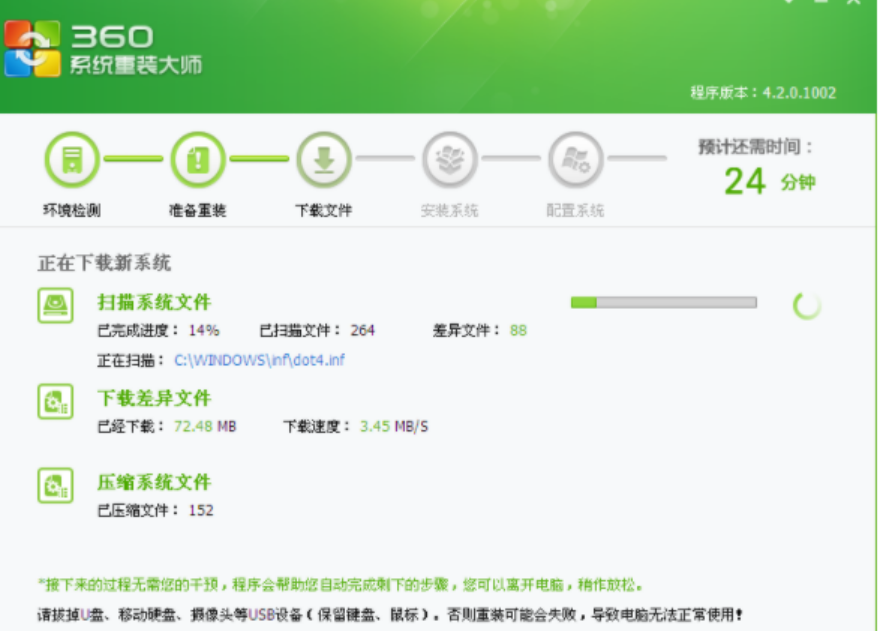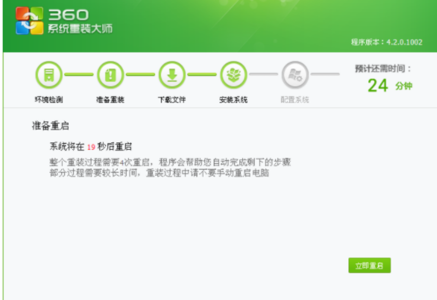 | 曾经做系统是一个技术活,一个熟练的技术员,往往也要忙活半天。现在360系统重装大师的出现在系统重装领域又开辟了一个新的时代,不需要光驱,不需要制作启动盘。甚至只要会认字,会用鼠标就可以自己重装一个系统出来。今天就体验一回用360大师重装系统,把360重装大师使用步骤分享给大家。 工具/原料: 系统版本:windows10系统 品牌型号:戴尔灵越16pro 软件版本:360重装大师 方法/步骤: 360重装大师使用教程: 1、下载360系统重装大师并运行,进入界面点击 "重装环境检测"。 2、等待重装过程中相关文件的下载。 3、下载完成后点击立即重启。 4、等待重装完成。 5、系统实际完成后,进入配置系统环节,以确保安装好的系统中驱动都能正常运行。 总结: 1、下载360系统重装大师并运行,进入界面点击 "重装环境检测"。 2、等待相关文件下载完成后重启。 3、等系统安装完成后进入配置系统环节即可。 |