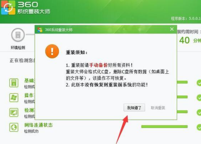 | 360系统重装怎么样,360一键重装系统有着很多强悍的功能人气也不错但还有一些新用户不知道它到底靠不靠谱,今天就给你们带来360一键重装系统靠不靠谱详情介绍,快来看看吧。 工具/原料: 系统版本:windows10系统 品牌型号:戴尔灵越16pro 软件版本:360系统重装 方法/步骤: 360系统重装靠谱吗: 360重装系统工具是非常可靠的,它是一款一键式系统重装工具,支持Win7/XP系统的在线系统重装,这个工具不是真正意义上的给你重装系统,跟U盘重装系统不同,而是类似于把你原来的系统初始化,不会对电脑产生任何的不利因素,所以严格来说是即安全又可靠。具体的操作教程如下: 360重装系统教程: 1、打开360卫士,点击功能大全。 2、搜索重装系统。 3、点击重装环境检测。 4、检测环境中。等待检测完成。 5、建议提前备份数据,备份完后点击我知道了。 6、然后重装大师会自动进行重装,无需手动操作。 总结: 1、打开360卫士,点击功能大全。 2、搜索重装系统。 3、点击重装环境检测。 4、检测环境中。等待检测完成。 5、备份完后点击我知道了。 6、然后重装大师会自动进行重装。 |