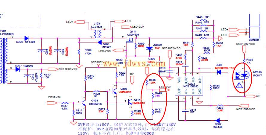 | NCS1002-D是一个集成的开关模式的电源(SMPS),应用于双控制回路的恒定电压(CV)和恒定电流(CC)的调节。它的内部集成了一个2.5V的基准和2个高精密度的运放。特点:低输入偏置电压:0.5 mV共模输入(运算放大器在线性工作范围内所能承受的最大共模输入电压)范围和接地低静态电流:300uA,每一个运算放大器15V宽电源范围:3 V到32 V高防静电保护:2千伏电压基准和运放1 是电压控制环路的核心。运放2 则是一个独立运放,用于电流控制。电压控制环路用于保证输出电压的稳定,电流反馈控制环路检测LED 平均电流,即电路中R441 上的电压,与5脚的基准电压比较,并将误差反馈到U202 NCP1271的FB 脚来调整Q401的占空比稳定输出电压。HSM35D-1MF 264NCS1002-D次级恒流恒压控制器工作原理 123 / 3 页下一页 |