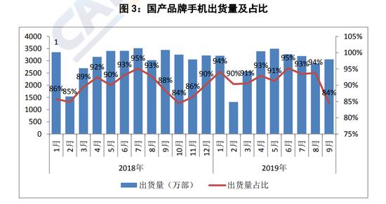 | 中国信息通信研究院今日发布2019年9月国内手机市场运行分析报告,目前国内的手机市场总体出货量处于下降阶段,笔者认为是有大部分人仍在等待5G网络的普及,以方便直接购买低价格的5G手机。 一、国内手机市场总体情况 国内手机市场总体出货量。2019 年 9 月,国内手机市场总体出货量 3623.6 万部,同比下降 7.1%,环比增长 17.4%,其中 2G 手机 145.4 万部、4G 手机 3428.6 万部、5G 手机 49.7 万部; 2019 年 1-9 月,国内手机市场总体出货量 2.87 亿部,同比下降 5.7%,其中 2G 手机 1194.6 万部、3G 手机 5.8 万部、 4G 手机 2.75 亿部,5G 手机 78.7 万部。 国内手机市场上市新机型数量。2019 年 9 月,上市新机型 90 款,同比下降 1.1%,其中 2G 手机 22 款、4G 手机 59 款、5G 手机 9 款;2019 年 1-9 月,上市新机型 433 款,同比下降 31.8%,其中 2G 手机 94 款、3G 手机 1 款,4G 手机 320 款、5G 手机 18 款。 二、国内手机市场国内外品牌构成 2019 年 9 月,国产品牌手机出货量 3060.9 万部,同比下降 11.2%,占同期手机出货量的 84.5%;上市新机型 80 款,同比下降 2.4%,占同期手机上市新机型数量的 88.9%。2019 年 1-9 月,国产品牌手机出货量 2.64 亿部,同比下降 4.2%,占同期手机出货量的 91.8%;上市新机型 384 款,同比下降 33.9%,占同期手机上市新机型数量的 88.7%。 三、国内智能手机发展情况 智能手机出货量。2019 年 9 月,智能手机出货量 3468.3 万部,同比下降5.7%,占同期手机出货量的 95.7%,其中 Android 手机在智能手机中占比85.1%。2019 年 1-9 月,智能手机出货量 2.75 亿部,同比下降 4.2%,占同期手机出货量的 95.6%,其中 Android 手机在智能手机中占比 92.1%。 智能手机上市新机型数量。2019 年 9 月,智能手机上市新机型 68 款,同比下降 4.2%,占同期手机上市新机型数量的 75.6%,其中支持 Android 操作系统的手机 65 款。2019 年 1-9 月,智能手机上市新机型 332 款,同比下降31.8%,占同期上市新机型数量的 76.7%,其中支持 Android 操作系统的手机328款。 |