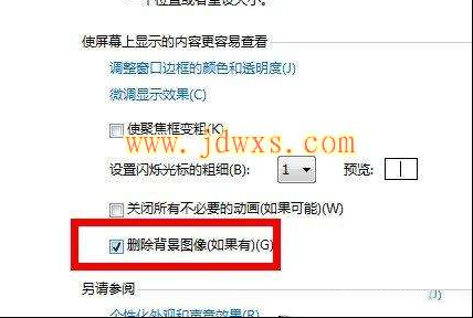 | 课堂Win7桌面背景快速更换三步法 Win7的粉友们,对于win7的各种美化上节课咱讲到关于任务栏的一些技巧,这节课我们还是从最基础的讲起,面对新手们的种种问题,小编也是在极力的分享各种只是技巧。 这节课咱们来聊聊如何更换win7桌面背景,具体方法如下: 步骤1、开始菜单---控制面板---轻松访问与控制中心,然后选择使计算机更易于查看 课堂Win7桌面背景快速更换三步法 步骤2、查看一下窗口底部的使屏幕上显示的内容更易于查看部分,看看删除背景图像(如果有)是否被勾选?如果有,清空勾选即可 课堂Win7桌面背景快速更换三步法 步骤3、在桌面右击选择个性化,重新壁纸即可 课堂Win7桌面背景快速更换三步法 显然,在win7的各种装饰下其各种设置步骤都如出一辙,只不过使用的设置界面更人性化,只有更多了解系统,才会更熟悉其各种设置,本节结束。老杨推荐阅读:新手win7任务栏右下角的时间美化 三个步骤还原win7、win8默认任务栏样式 |